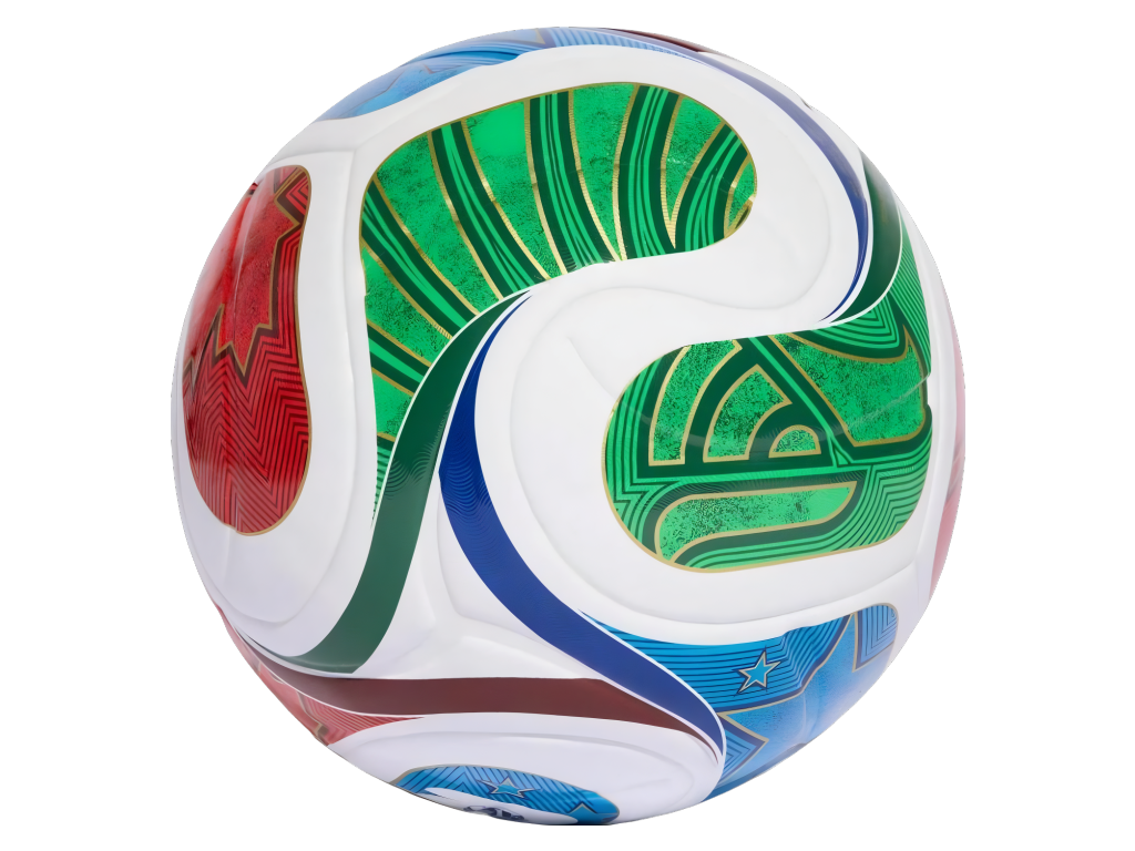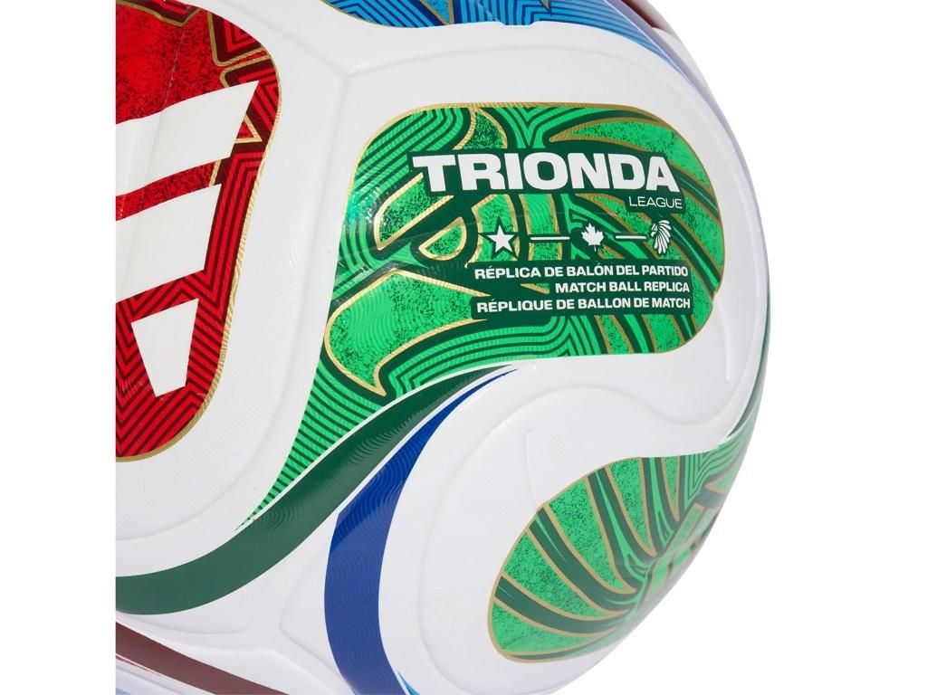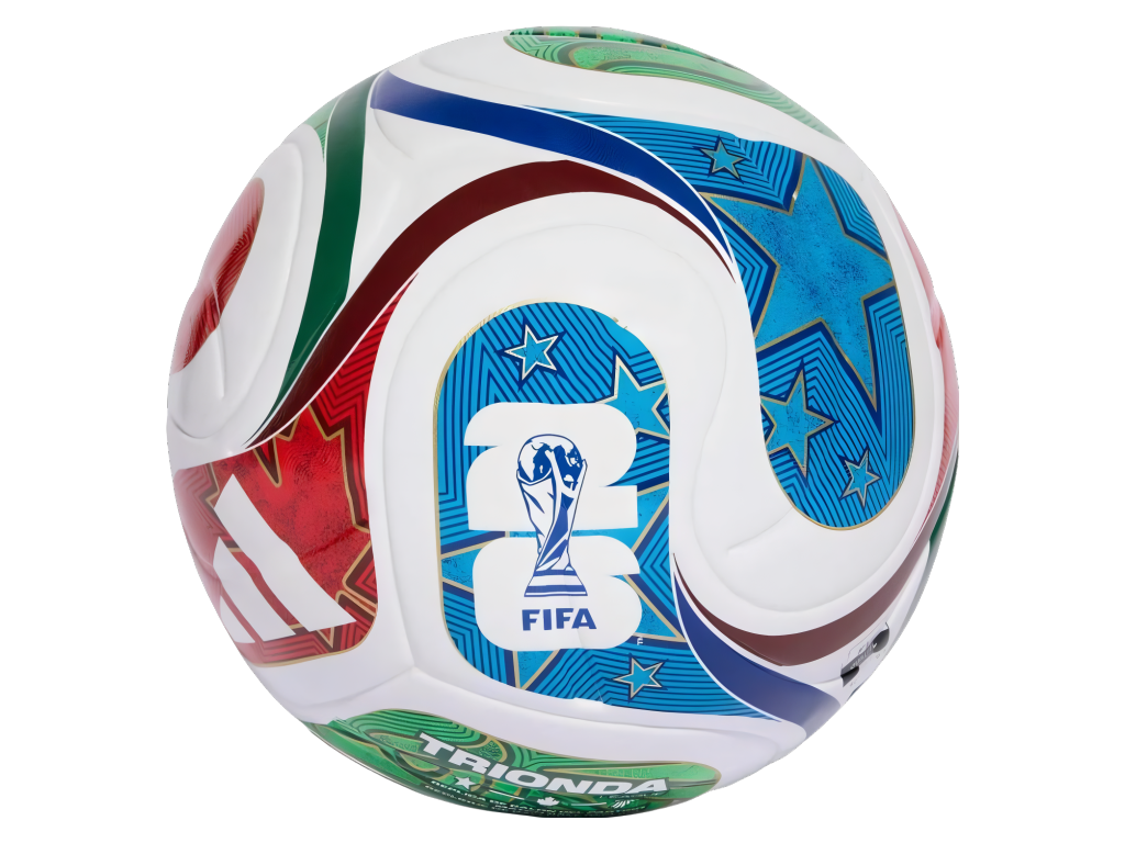 Zápasový míč adidas Trionda League s designem oficiálního míče FIFA World Cup 2026. Bezešvý laminovaný povrch z recyklovaného termoplastického polyuretanu (TPU) zajišťuje předvídatelnou letovou dráhu, přesné přihrávky a nižší nasákavost. Texturovaný povrch s reliéfními prvky zlepšuje stabilitu letu a kontrolu míče i za mokra. Butylová duše drží tlak po dlouhou dobu, takže míč nemusíš neustále dofukovat. Čtyřpanelová konstrukce přebírá tvar i propracovaný grafický motiv z oficiálního zápasového míče turnaje — symboly tří hostitelských zemí (hvězda pro USA, javorový list pro Kanadu, orel pro Mexiko) doplňují dynamické vlny v červené, zelené, modré a bílé s detaily ve zlaté. Míč splnil certifikaci FIFA Quality a prošel testy na obvod, hmotnost, odskok i nasákavost