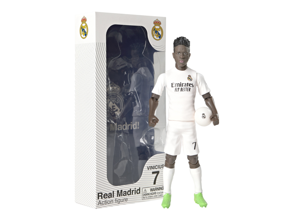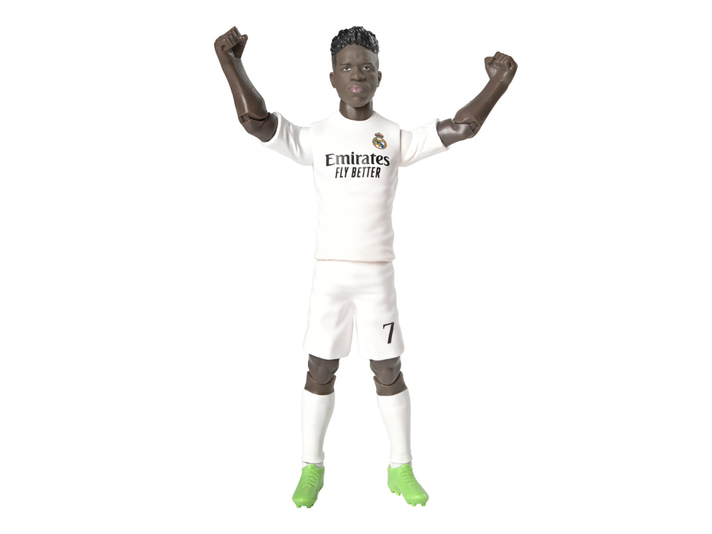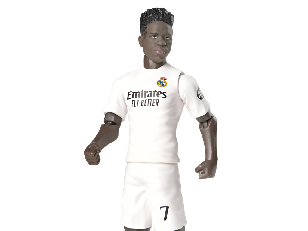 Akční figurka Viniciuse Júniora přináší ztvárnění hvězdy Realu Madrid v domácím týmovém dresu. Detailně propracovaná figurka má na zádech jméno i číslo hráče 7. Díky pohyblivým kloubům ji lze nastavit do různých pozic. Výška 20 cm. V balení najdete také fotbalový míč se znakem Real Madrid. Dodáváno v dárkové krabičce s průhledem.