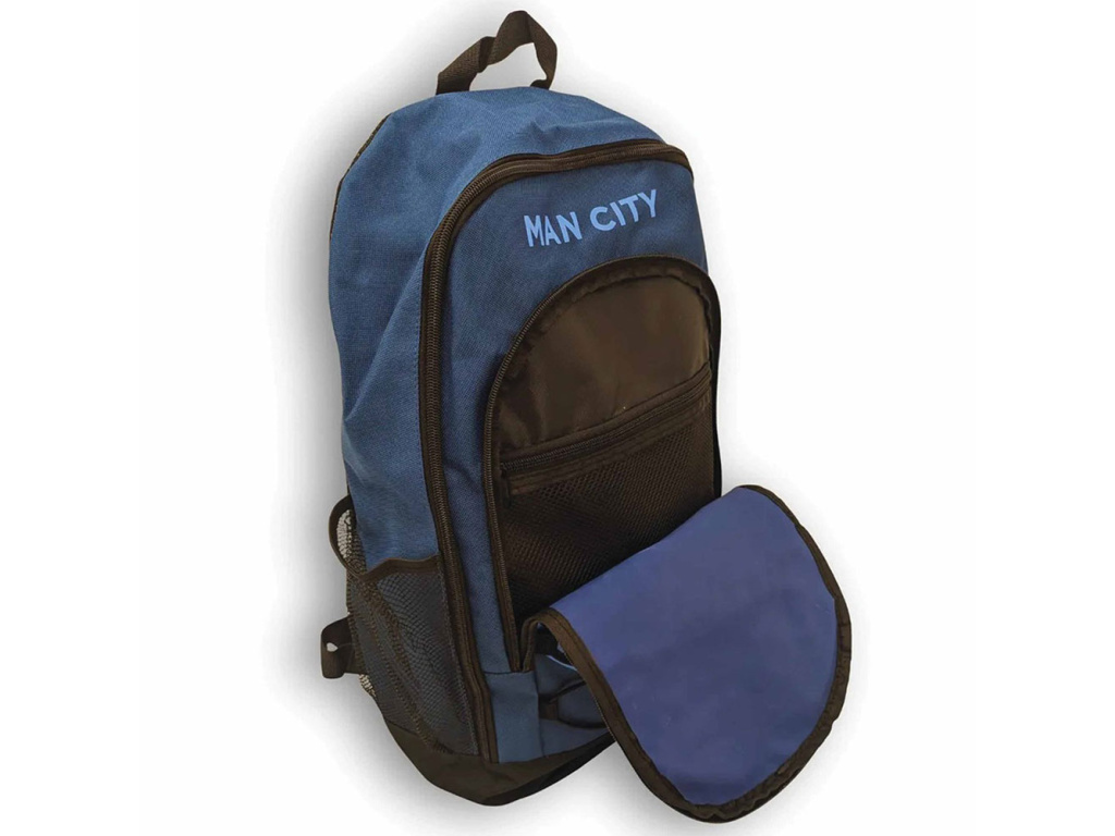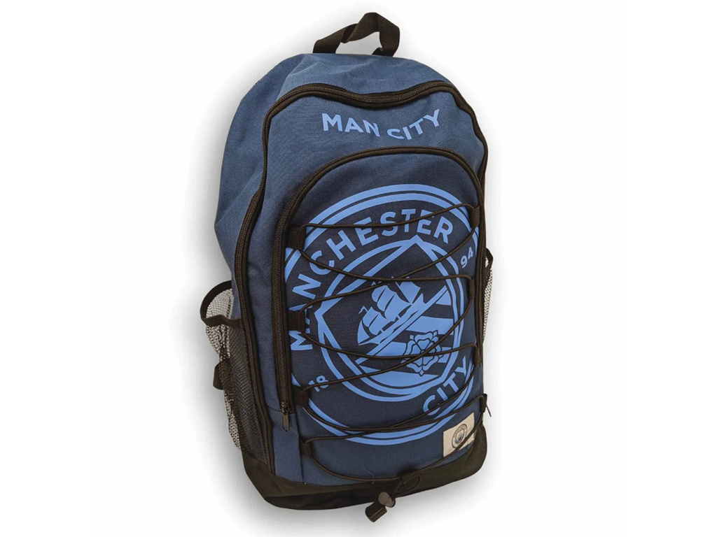 Batoh Manchester City FC v modré barvě kombinuje praktické bungee šněrování s pohodlně polstrovanými zády. Tmavě modré tělo s černými detaily nese velký světle modrý klubový znak a nápis MAN CITY. Hlavní komora s dvojcestným zipem a přední kapsa na zip usnadní organizaci, po stranách jsou dvě síťové kapsy na lahev. Záda tvoří prodyšná síťovina a nastavitelné polstrované popruhy dobře sedí, nahoře je pevné poutko. Vyroben z polyesteru, který se snadno čistí vlhkým hadříkem. Rozměry cca 32 × 46 × 14 cm, hodí se do školy, na trénink i na výlety.