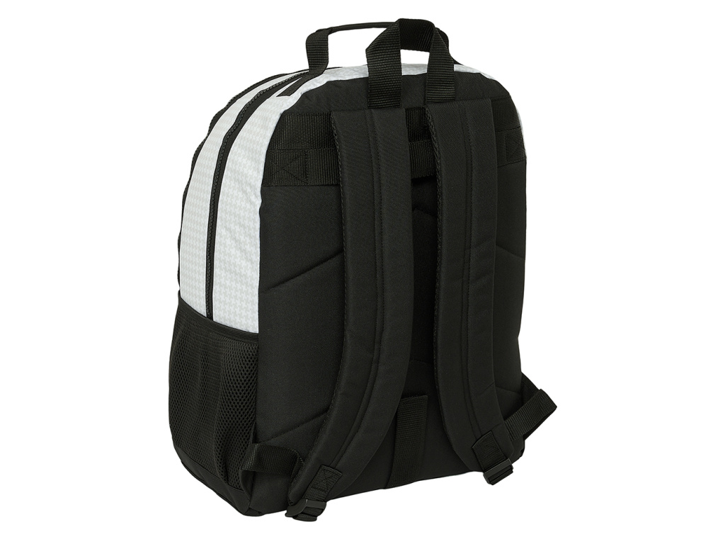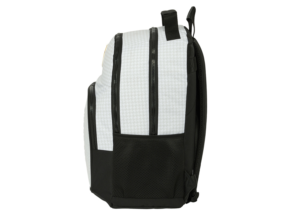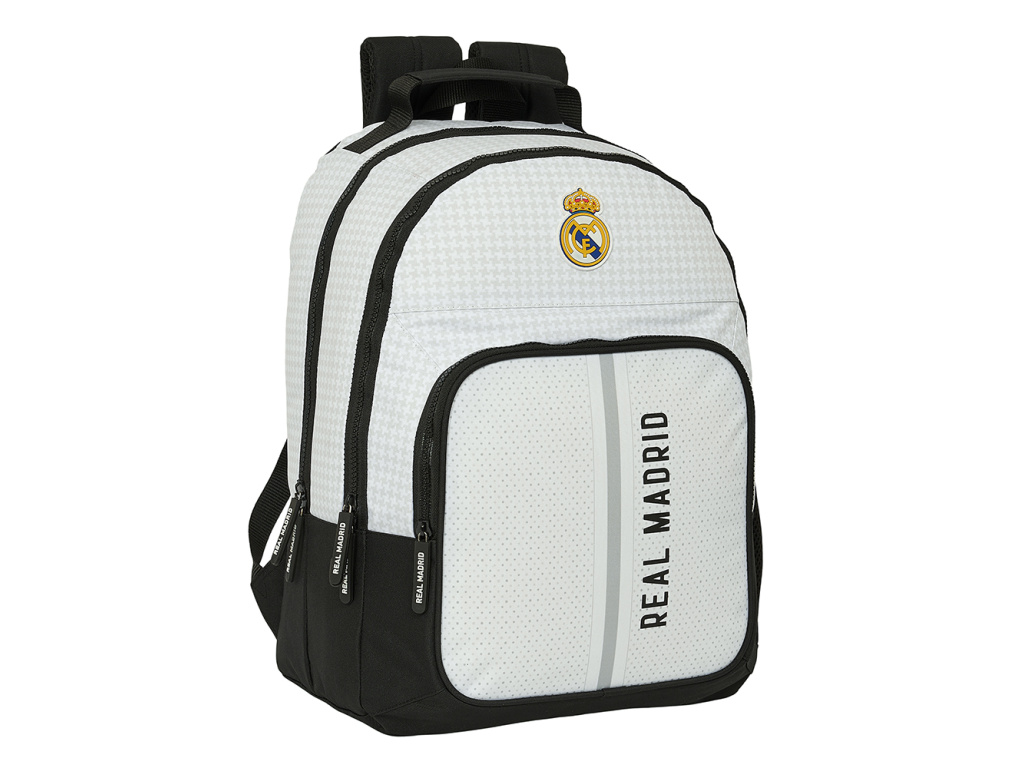 Batoh Real Madrid FC v bílém provedení. Barevný znak klubu a nápis Real Madrid na přední straně. Dvě velké hlavní přihrádky pro všechny nezbytnosti. Jedna menší kapsa na svačinový box. Na straně síťovaná kapsa na láhev nebo jiné drobnosti. Hlavní přihrádky mají dvojitý zip pro pohodlné otevírání. Výhodou batohu jsou ergonomicky polstrovaná záda a nastavitelné ramenní popruhy, které zajišťují komfort při nošení. Dno batohu v rozích vybaveno gumovými nožkami, které zabraňují znečištění batohu.