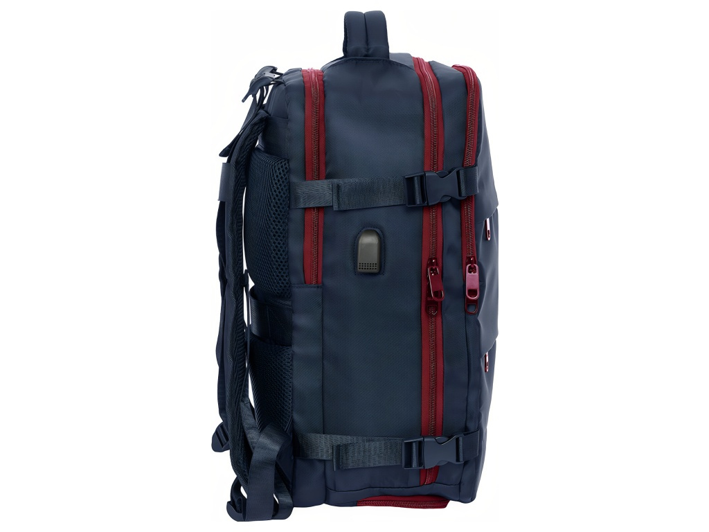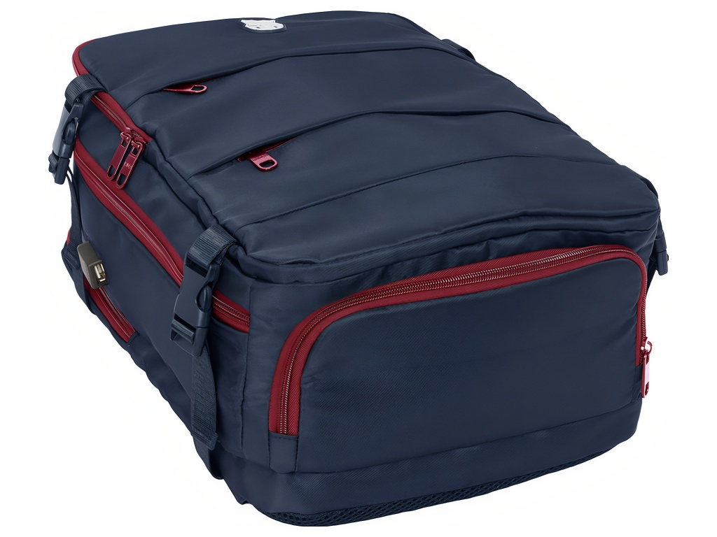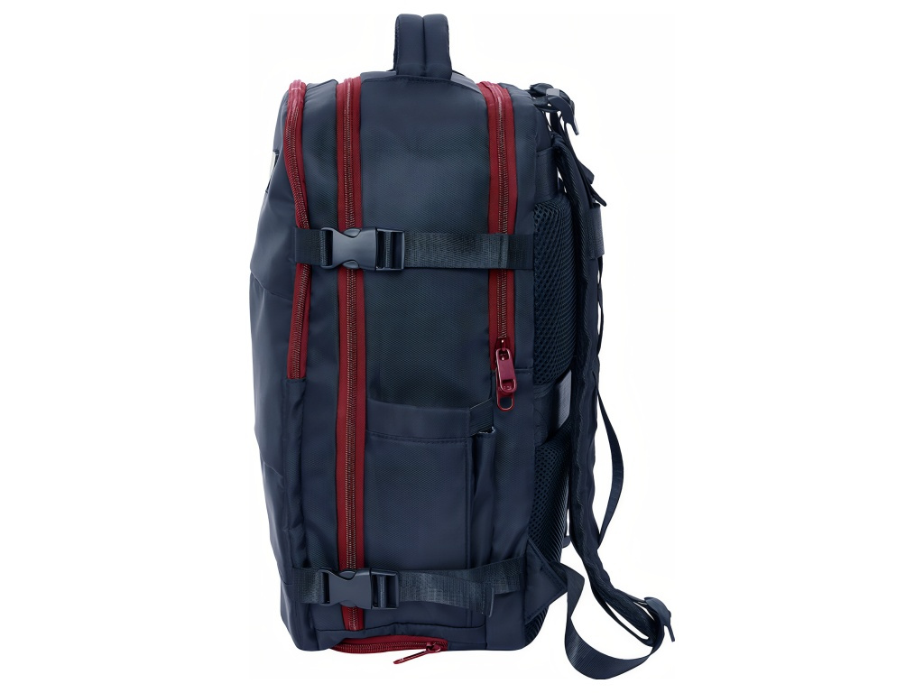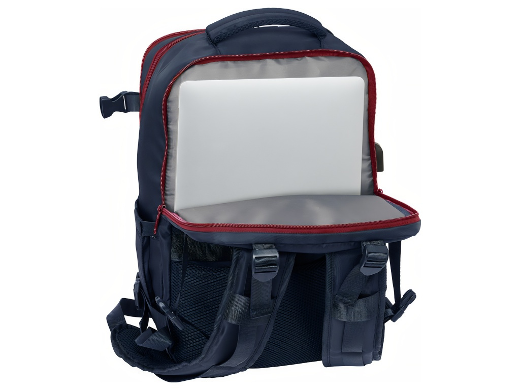 Cestovní kabinový batoh FC Barcelona v tmavě modrém provedení se znakem klubu na přední straně. Přední stranu zdobí znak FC Barcelona. Batoh má 3 oddíly na zip. Hlavní oddíl je prostorný pro oblečení a větší věci. Druhý oddíl má vnitřní organizér a síťovanou kapsu na zip. Třetí oddíl chrání polstrovaná přihrádka pro notebook 15,6". Na boku je kapsa na láhev. Ve spodní části je zipová přihrádka na obuv nebo prádlo. Hlavní oddíly mají dvojité jezdce pro snadné otevírání. Na boku je USB port pro nabíjení na cestách. Vnitřek je kompletně podšitý a polstrovaný. Polstrované ramenní popruhy zvyšují pohodlí při nošení. Zadní panel má prodyšnou síťovinu. Na zadní straně je popruh na kufr. Postranní kompresní popruhy udrží kompaktní tvar. Hlavní oddíly lze otevřít téměř do 180°. Zipy mají prodloužená táhla. Horní madlo je polstrované. Rozměry batohu jsou 29 × 19 × 44 cm. Objem je 23,1 l. Hodí se do kabiny letadla i na pracovní cesty.