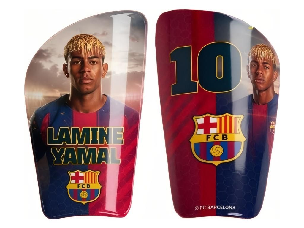 Chrániče holení FC Barcelona s celoplošným potiskem Lamine Yamala a jeho číslem 10, velikost M. Oba chrániče nesou portrét mladé hvězdy Barcelony v klubovém dresu, doplněný znakem FCB v tradičních barvách blaugrana. Anatomicky tvarovaný profil sedí na holeni přirozeně a neomezuje pohyb. Lehká konstrukce z odolného plastu zajistí ochranu při rekreační hře i tréninku.