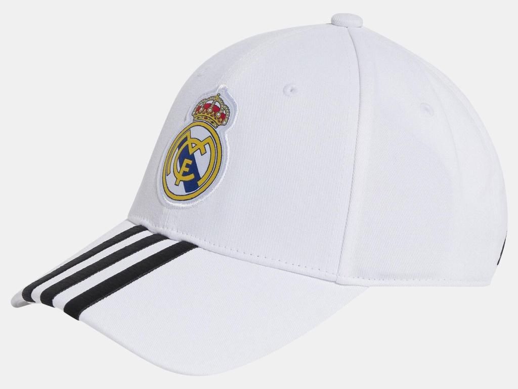 Dětská kšiltovka Adidas v barvách Real Madrid s klasickým prohnutým kšiltem. Povrch z 100% bavlny je příjemný na dotek a prodyšný i za teplého počasí. Na přední straně je tkaný znak klubu, na kšiltu tři černé pruhy v typickém stylu Adidas. Vzadu má nastavitelný pásek s kovovou přezkou a vytlačeným znakem Real Madrid, takže velikost snadno přizpůsobíš. Větrací otvory na koruně zajišťují cirkulaci vzduchu.