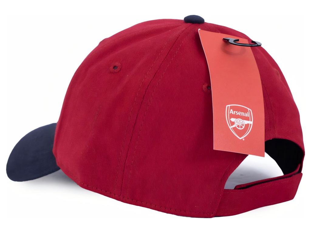 Dětská kšiltovka Arsenal FC v červené s tmavě modrým kšiltem pro malé fanoušky. Velký vyšívaný znak na čele. Prohnutý kšilt poskytne stín. Pásek na suchý zip umožní rychlé nastavení obvodu (cca 54–56 cm). Pevná šestipanelová koruna s odvětrávacími očky drží tvar.