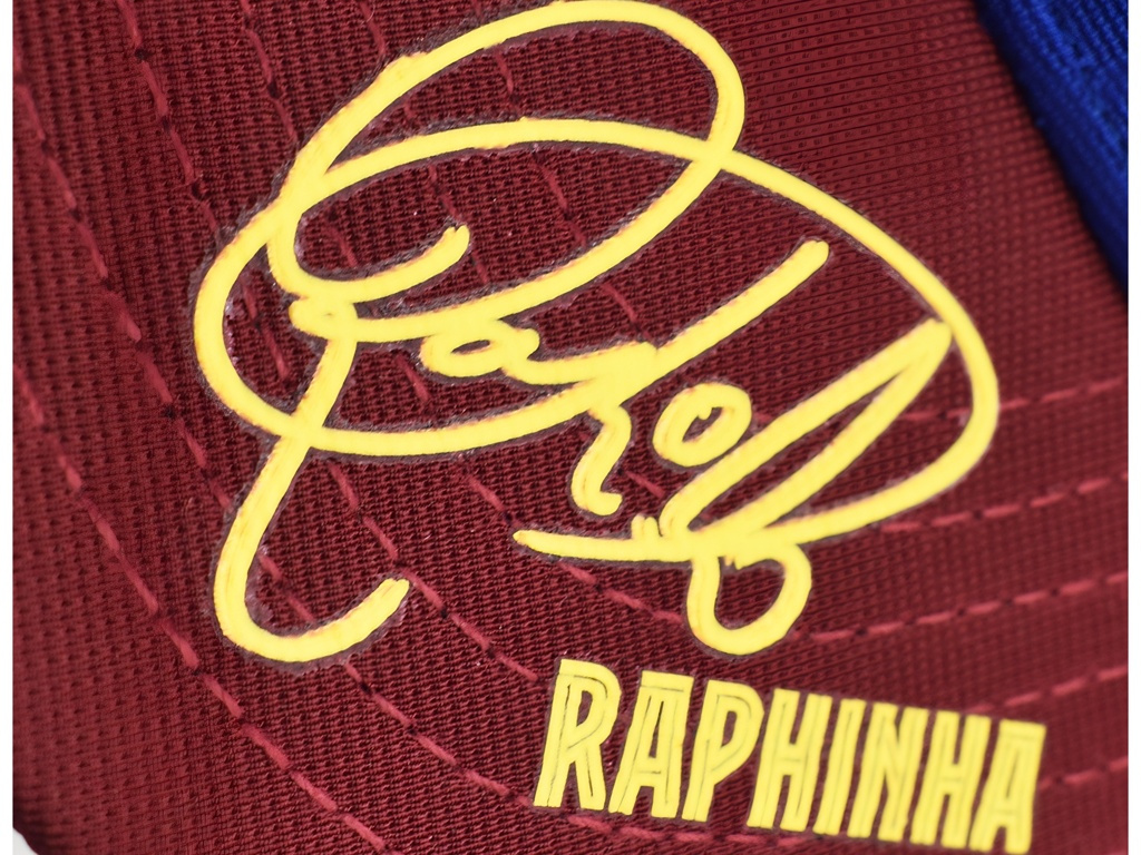 Dětská kšiltovka FC Barcelona s motivem Raphinhy pro malé fanoušky. Přední panel v modré zdobí velký klubový znak, vínový kšilt nese zlatý motiv podpisu a jméno hráče. Na boku je detail „1899“ a nápis BARÇA. Materiál je z 100 % polyesteru, je lehký a příjemný na nošení. Díky nastavitelnému obvodu 51–57 cm dobře sedí.