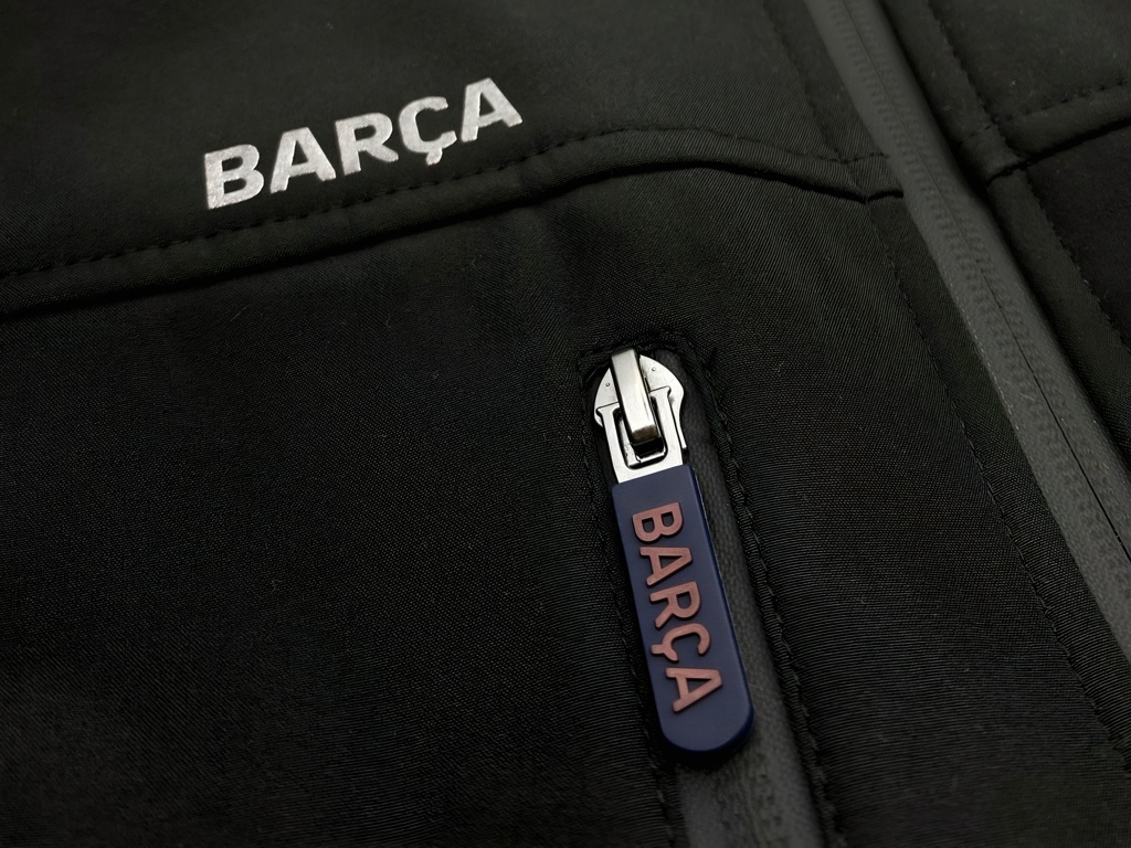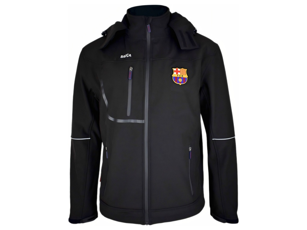 Dětská softshellová bunda FC Barcelona v černé barvě je připravená na každý den fanouška. Má kapuci, celopropínací zip a tři praktické kapsy na zip. Na hrudi je klubový znak jako 3D gumový štítek. Přední část a rukávy doplňují šedé reflexní detaily. Nápis BARÇA na hrudi a motto na zádech dotvářejí vzhled. Materiál 100 % polyester se snadno udržuje a dobře drží tvar.