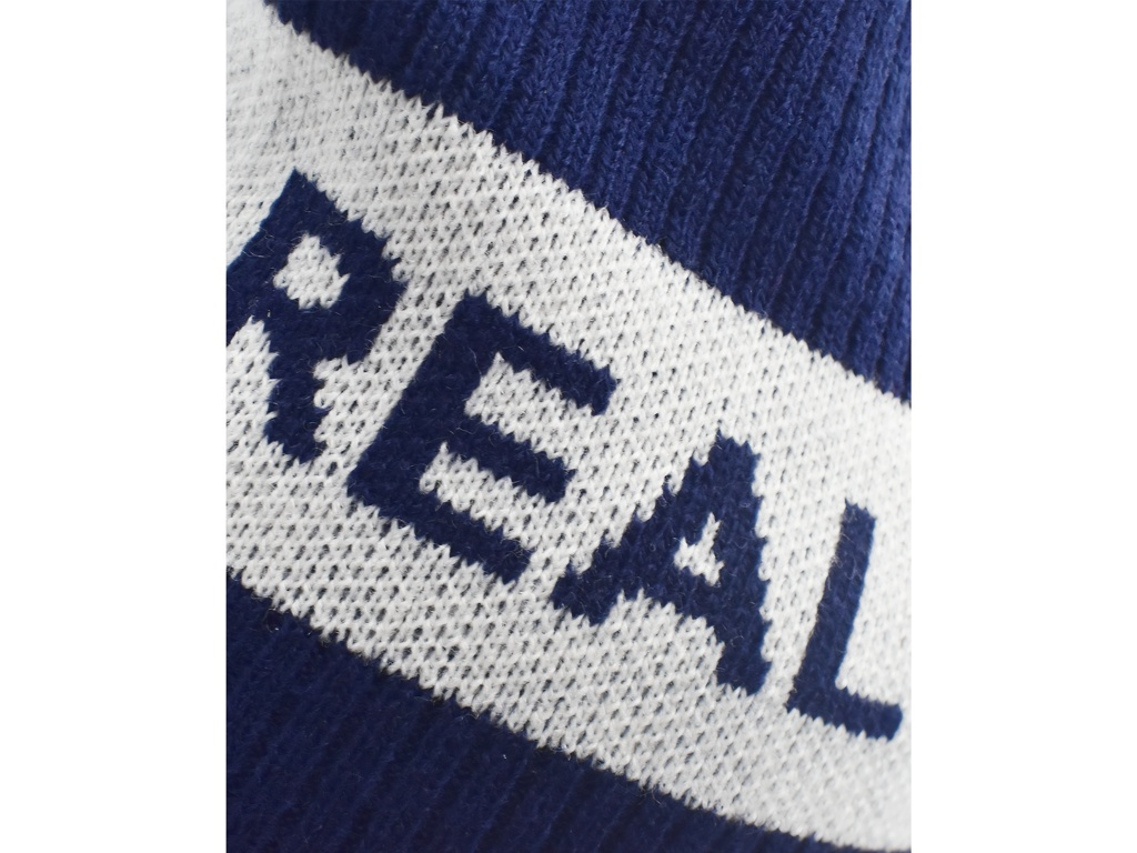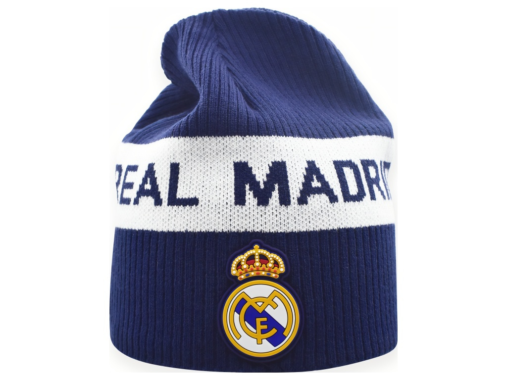 Dětská zimní čepice Real Madrid v tmavě modré a bílé ukáže klubové barvy a udrží teplo v zimě. Pružný akrylový úplet je lehký a příjemný. Kontrastní pruh s pleteným nápisem je dobře vidět. Na přední straně je našitý plastický znak v reliéfu. Beanie střih bez bambule se vejde pod kapuci a pohodlně sedí. Univerzální dětská velikost.