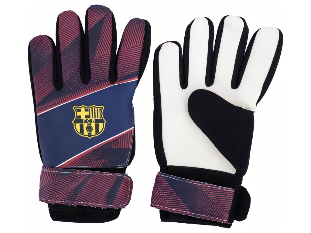 Dětské brankářské rukavice FC Barcelona ve střihu Flat a ve velikosti 5 pro tréninky i školní zápasy. Bílá dlaň z latexové pěny zlepšuje přilnavost a tlumí střely. Hřbet s lehkým polstrováním chrání prsty. Elastická manžeta se suchým zipem umožní pevné stažení. Tmavě modrý hřbet s červeným vzorem doplňuje žlutý znak klubu. Síťovaný vak usnadní přenášení a větrání po tréninku.