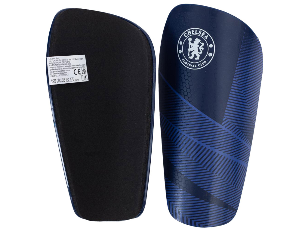 Dětské chrániče holení Chelsea FC pro trénink i zápas. Modré slip‑in štíty s bílým klubovým znakem pohodlně zajíždějí pod štulpny a neomezují pohyb. Tvrdá tvarovaná plastová skořepina pomáhá tlumit nárazy, vnitřní měkké pěnové polstrování zvyšuje komfort při každém kontaktu. Velikost Youths s délkou 19 cm sedí mladším hráčům a v balení je i síťovaný sáček se stahováním.