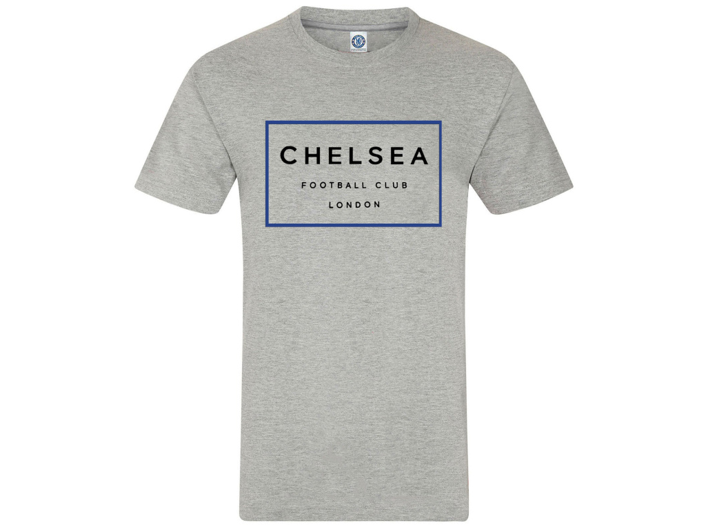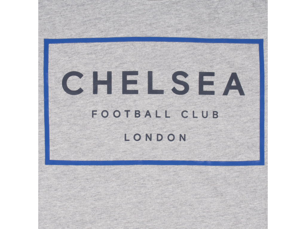 Dětské tričko Chelsea FC ve šedé barvě. Nápis CHELSEA FOOTBALL CLUB LONDON zepředu. Klasický střih. Prvotřídní bavlna.