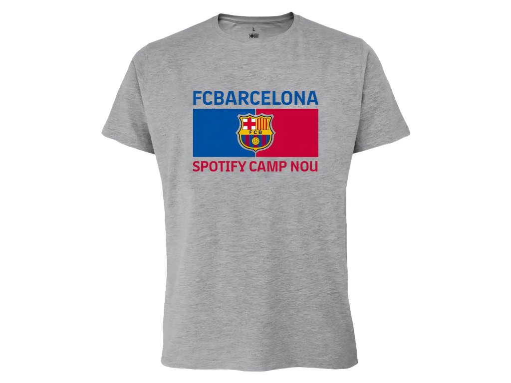 Dětské šedé tričko FC Barcelona se znakem na hrudi a nápisem Spotify Camp Nou. Krátký rukáv a kulatý výstřih pro pohodlné nošení každý den. Materiál je z 100 % bavlny a je příjemný k pokožce. Výrazný potisk v klubových barvách. Vhodné do školy, na hřiště i volný čas.