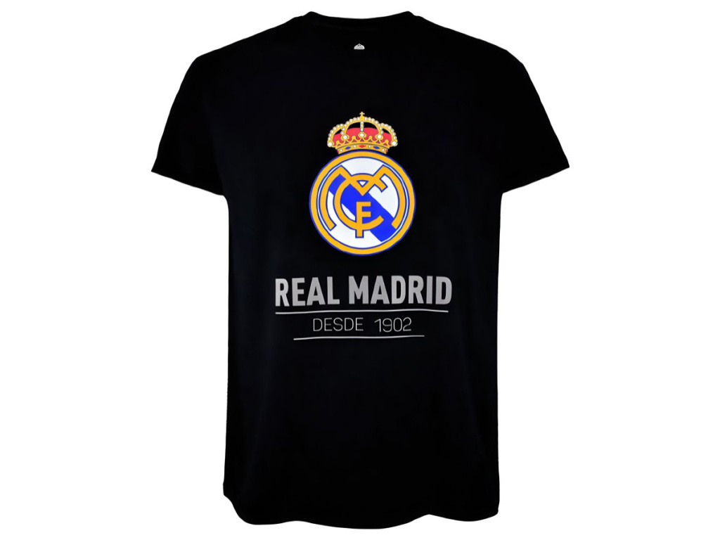Dětské tričko Real Madrid v černé barvě s krátkým rukávem a velkým potiskem klubového znaku na hrudi. Pod znakem je nápis Real Madrid a řádek DESDE 1902. Měkká 100 % bavlna je příjemná na kůži a vhodná na celodenní nošení. Kulatý výstřih a pohodlný střih se snadno kombinuje s mikinou i džínami. Dobrá volba do školy, na výlety i na fandění.