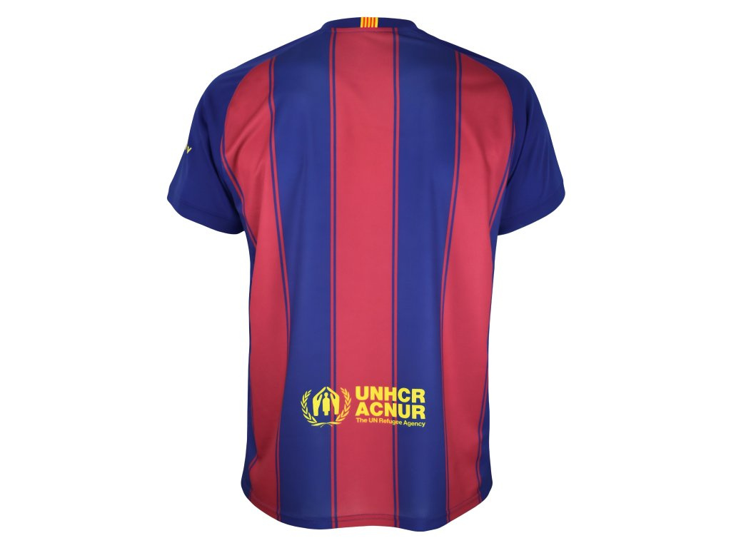 Dětský domácí dres FC Barcelona 2025/26 – oficiální replika pro malé fanoušky. Tradiční blaugrana pruhy doplňují žluté akcenty a nápis BARÇA na hrudi. Na prsou je sponzorský motiv Spotify, na zádech UNHCR/ACNUR. Vyšívaný klubový znak zdůrazňuje týmovou hrdost. Lehký prodyšný polyester rychle schne a je pohodlný při pohybu. Raglánové rukávy a kulatý výstřih neomezují při hře. Na zadní straně límce jsou pruhy v barvách Katalánska.