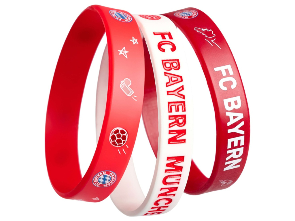 Dětský silikonový náramek FC Bayern Mnichov. Sada 3 kusy. Náramky jsou v bílé, čevené a vínové barvě. Každý náramek je opatřen znakem klubu a jeho názvem. Vyrobeno z odolného, zdraví nezávadného a pohodlného silikonu. Průměr 5 cm. Lehký a univerzální doplněk každého malého fanouška. Barvy náramku odpovídají barvám klubu.