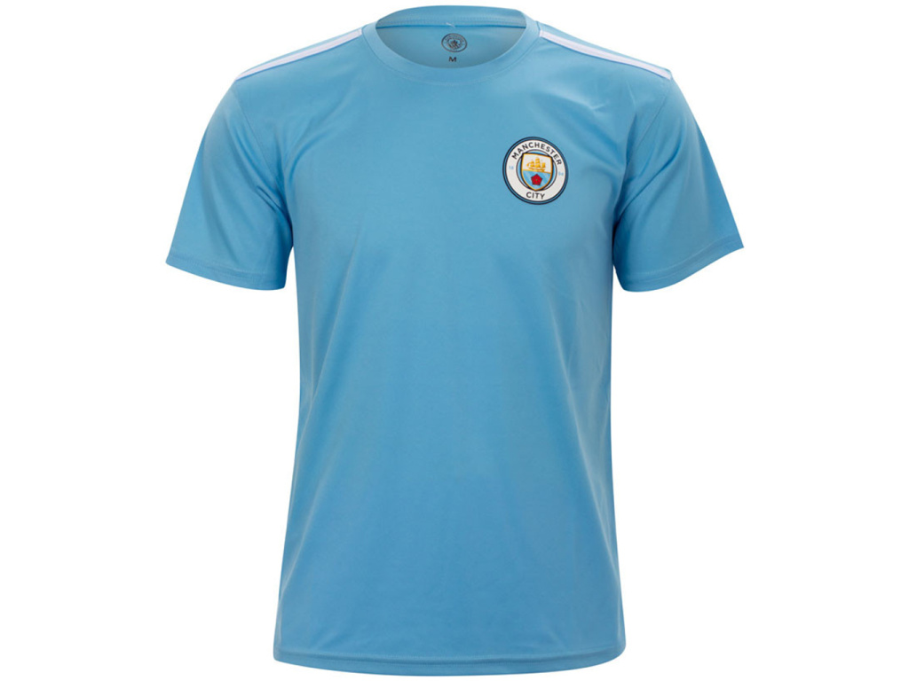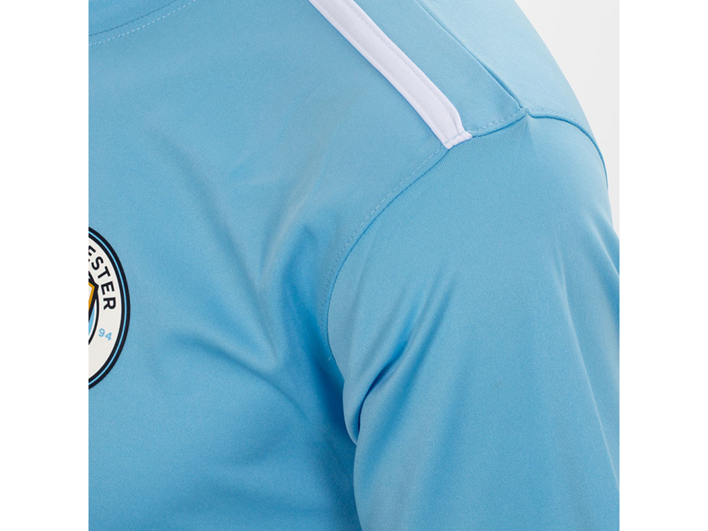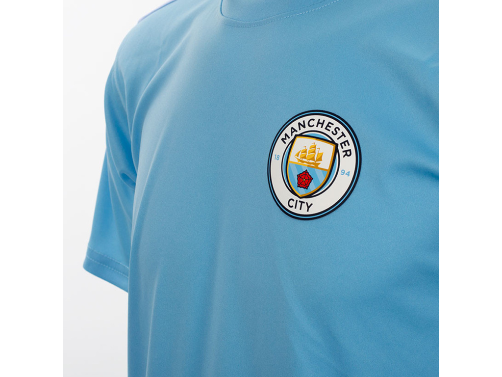 Dětský tréninkový dres Manchester City FC, souprava obsahuje sportovní tričko a šortky. Tričko nabízí modrou barvu s barevným znakem klubu a bílé pruhy na ramenou. Šortky jsou bílé a mají na pravé nohavici barevný znak. Vyrobeno z kvalitního polyesteru, který zajišťuje vysokou odolnost a pohodlí při nošení. Souprava je vhodná pro sportovní aktivity i pro volnočasové nošení.