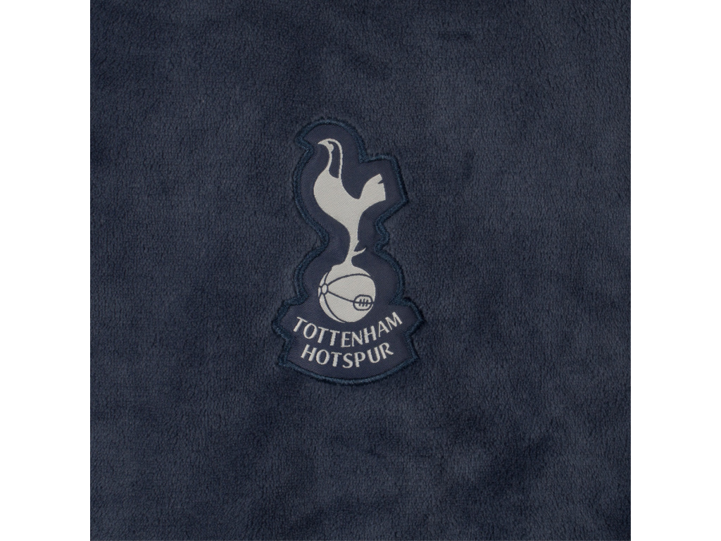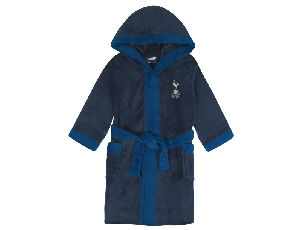 Dětský župan Tottenham Hotspur FC v tmavě modré barvě. Světle modré lemování. Našitý znak klubu. Praktický pásek. Příjemná kapuce. Dvě prostorné kapsy. Poutko na zavěšení. Kvalitní fleece.