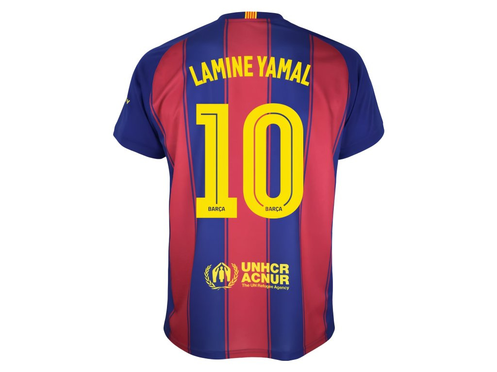Dres FC Barcelona 25/26 domácí – oficiální replika Lamine Yamal 10 pro fanoušky klubu. V ikonických blaugrana pruzích se znakem na hrudi a nápisem BARÇA. Na zádech je jméno a žluté číslo 10. Přední motiv partnera Spotify a zadní potisk UNHCR navazují na soutěžní vzhled. Lehký a prodyšný polyester. Raglánové rukávy a kulatý výstřih neomezují v pohybu.