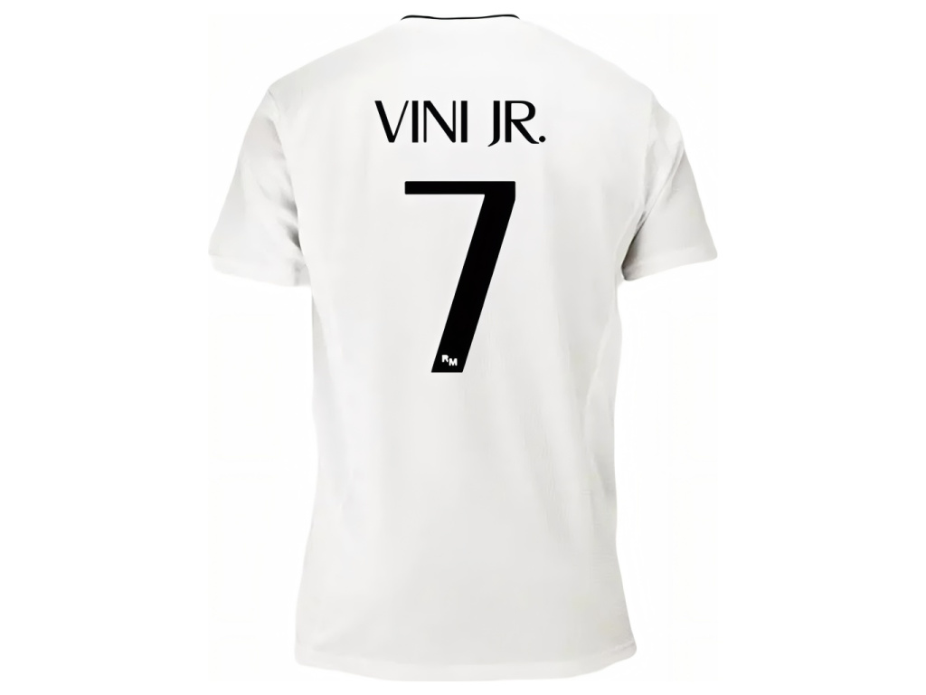 Domácí dres Real Madrid FC 24/25 Vini Jr. v čistě bílé barvě s výraznými černými detaily přináší ikonický vzhled španělského velkoklubu pro sezónu 2024/2025. Na levé straně hrudi je vyšité barevné znak Real Madrid FC, zatímco střed dominuje černý nápis hlavního sponzora. Na zádech najdete jméno hráče VINI a číslo 7 v černé barvě. Klasický střih a kulatý výstřih zajišťují pohodlí při nošení. Lehký 100% polyester poskytuje skvělou prodyšnost a odvod potu. Tento produkt je oficiální replika originálního dresu z aktuální sezóny.