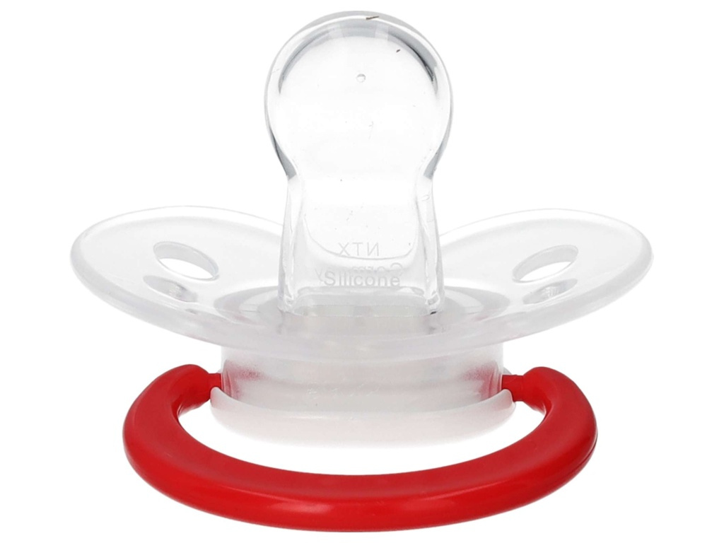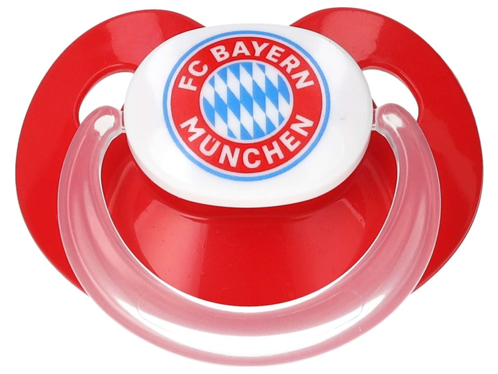 Dudlíky FC Bayern Mnichov pro věk 6–18 měsíců v sadě 2 kusů – červený a bílý. Měkká silikonová savička je příjemná v ústech. Lehký štítek má větrací otvory pro lepší proudění vzduchu. Kroužek usnadní uchopení i připevnění na klip. Klubový znak je na přední straně proveden jako potisk. Snadná údržba a čištění.