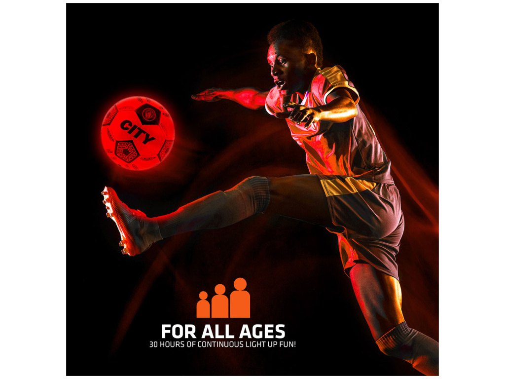 Viditelný i po setmění na hřišti, v parku nebo na zahradě. Svítící efekt usnadní orientaci a zpřehlední hru, když se stmívá. Díky nápisu CITY a znaku klubu potěší každého fanouška Citizens. Skvělý tip na dárek pro starší děti a dospělé. Po nafouknutí je připraven k okamžitému použití.