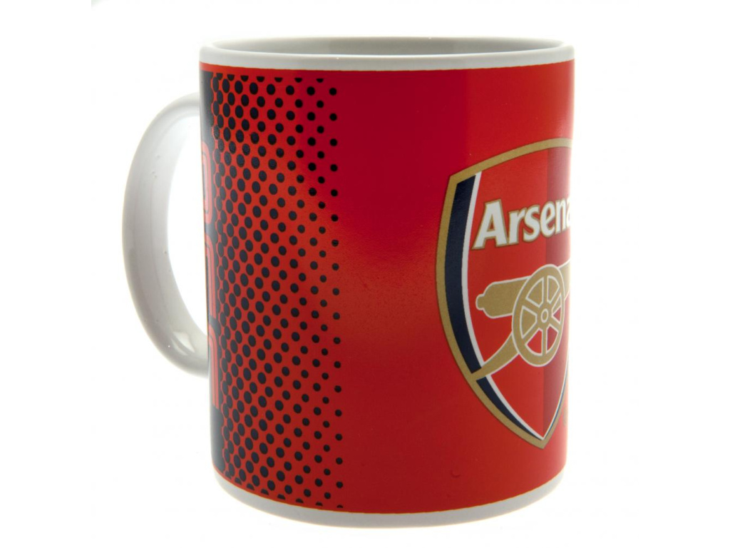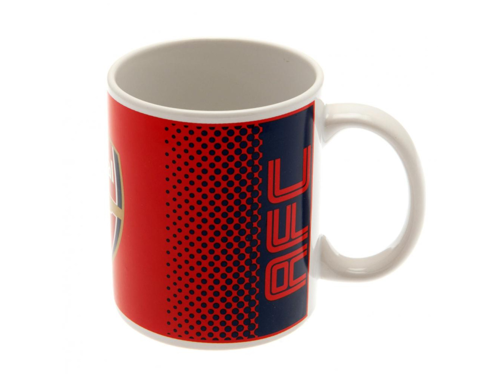 Hrnek Arsenal FC 300 ml vyroben z keramiky. Vyniká klasickými červeno-černými barvami, které odkazují na oficiální barvy klubu. Červená barva, na které vyniká znak klubu, postupně přechází v černou barvu na boční straně. Na černém pozadí u ucha vyniká zkratka AFC. Vhodný na teplé i studené nápoje.