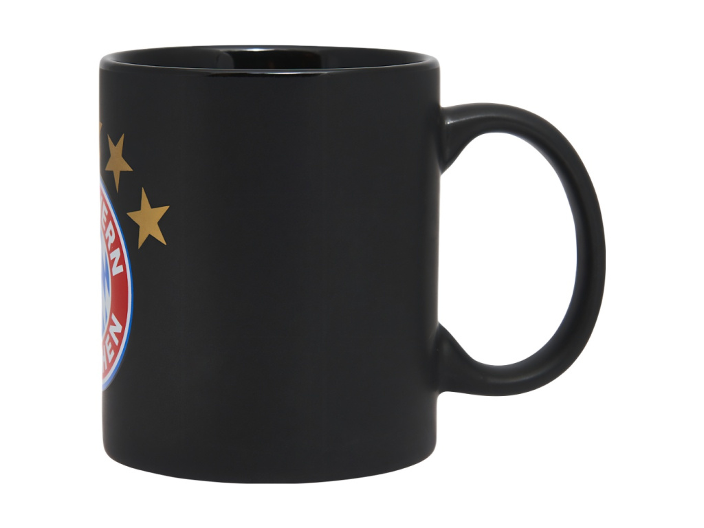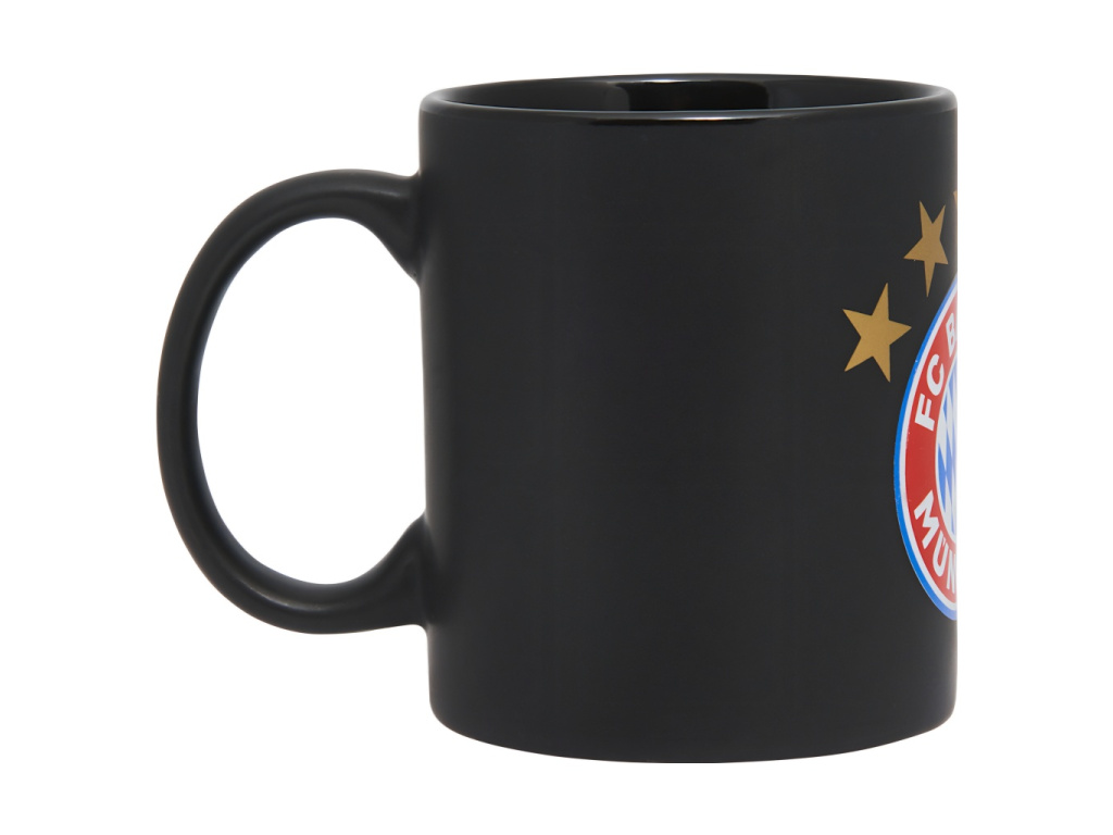 Hrnek FC Bayern Mnichov byl vyroben z keramiky. Černá barva. Natištěn barevný znak klubu a pět hvězd. Objem 300 ml. Vhodný na teplé i studené nápoje.