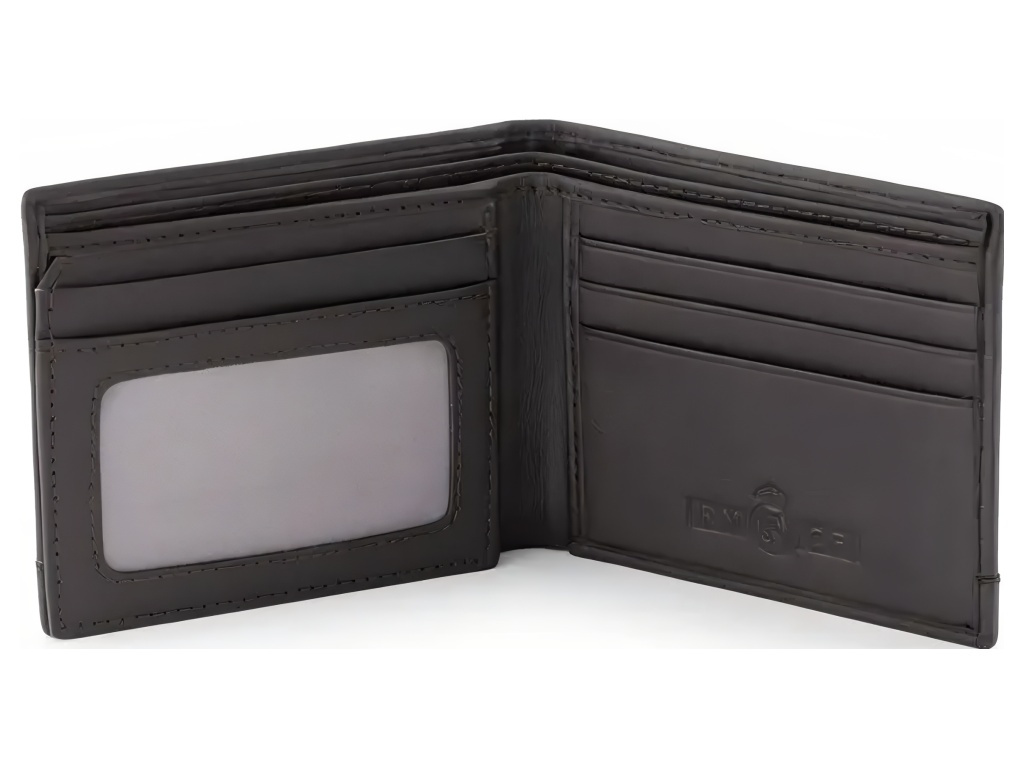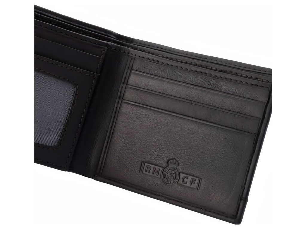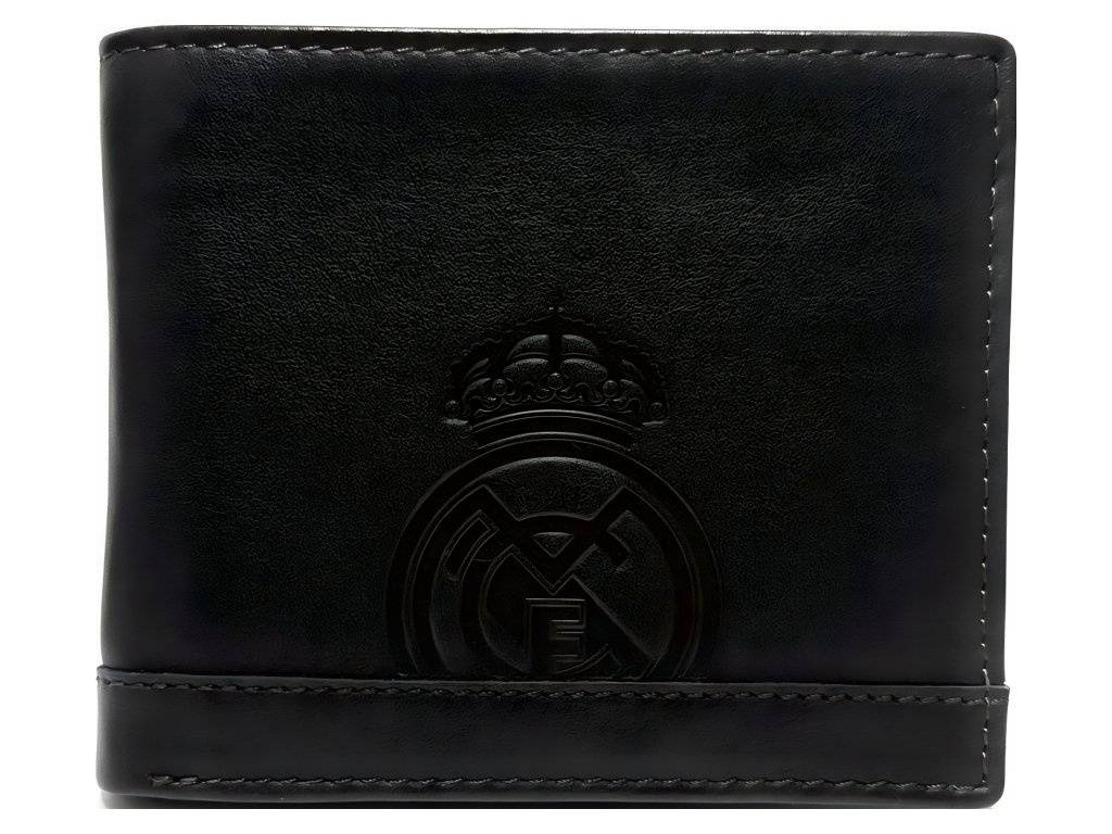Černá kožená peněženka Real Madrid v klasickém bifold formátu pro každý den. Ražený klubový znak na čele působí decentně. Pravá kůže je odolná a příjemná na dotek. Uvnitř je průhledné okénko na doklad a více přihrádek na karty. Dvě přihrádky na bankovky pojmou i bankovky ve větším formátu. RFID ochrana snižuje riziko nechtěného načtení karet. Díky tomu, že je bez kapsy na mince, drží štíhlý profil. Dodává se v dárkové krabičce.