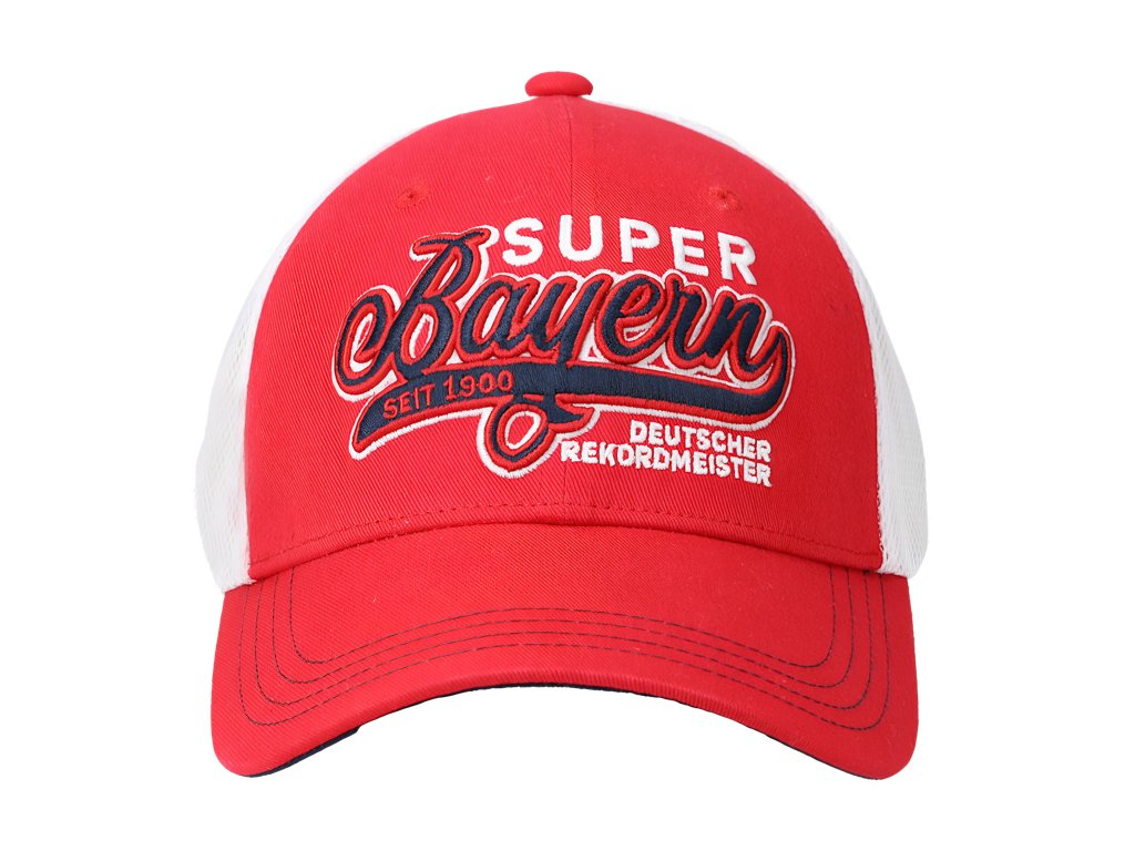 Trucker kšiltovka FC Bayern Mnichov v červené barvě s bílou síťovinou a tmavě modrými detaily. Přední část zdobí výrazný výšivkový nápis "Super Bayern – Deutscher Rekordmeister". Klasický trucker střih se síťovanou zadní částí zajišťuje vynikající prodyšnost i během teplejších dní. Zakřivený kšilt s kontrastním prošíváním dodává čepici moderní sportovní vzhled. Nastavitelný pásek na zadní straně umožňuje snadné přizpůsobení velikosti. Univerzální velikost pro dospělé.