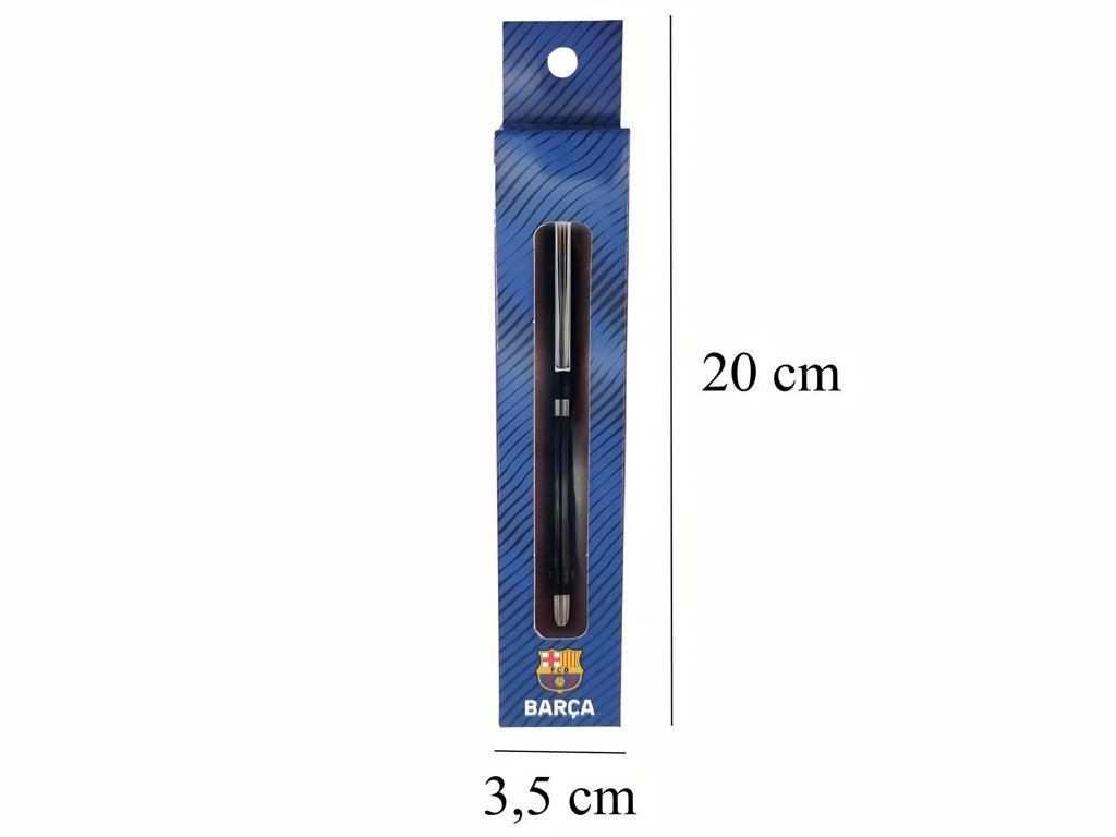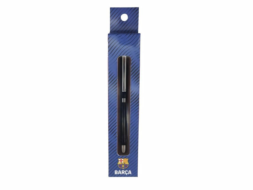Kovové kuličkové pero FC Barcelona v elegantní dárkové krabičce. Černé tělo pera doplňují chromové detaily — klip z nerezové oceli, středový prstenec a špička. Otočný mechanismus zajistí spolehlivé otevírání a zavírání jednou rukou. Střední hrot píše plynule černým inkoustem a náplň je univerzální, takže ji snadno vyměníš. Krabička v klubových barvách se znakem FC Barcelona a nápisem BARÇA ochrání pero při přepravě i při darování.
