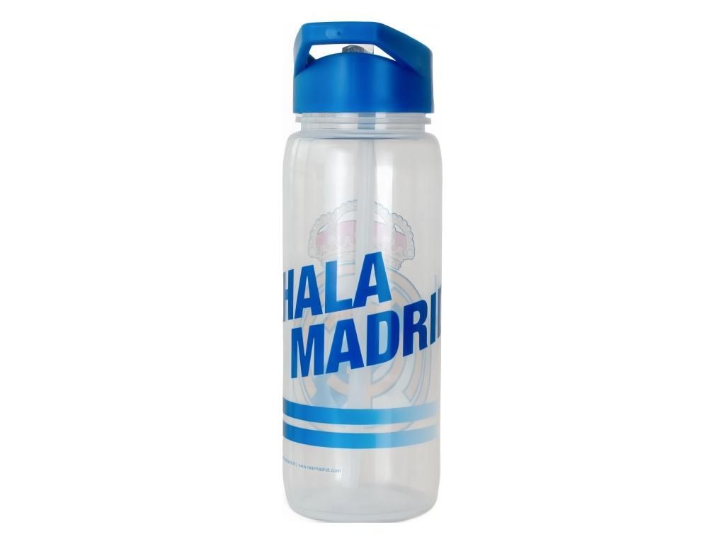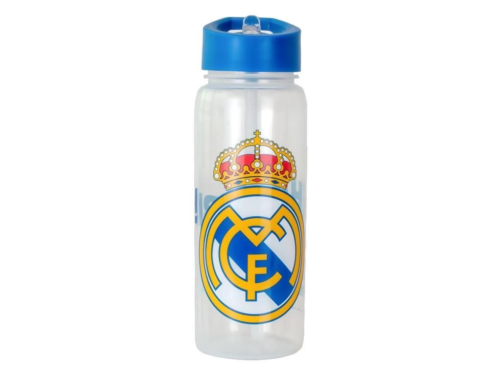 Průsvitná plastová láhev Real Madrid s modrým víčkem a náustkem na pití. Objem 600 ml pohodlně pokryje trénink, výlet i celý den ve škole. Láhev je vyrobena z polypropylenu (PP) a je bez BPA, takže se nemusíš bát o zdravotní nezávadnost. Na přední straně je velký barevný znak klubu, na zadní nápis Hala Madrid s modrými pruhy. S hmotností pouhých 110 g ji hodíš do batohu nebo do tašky a skoro ji nepocítíš.