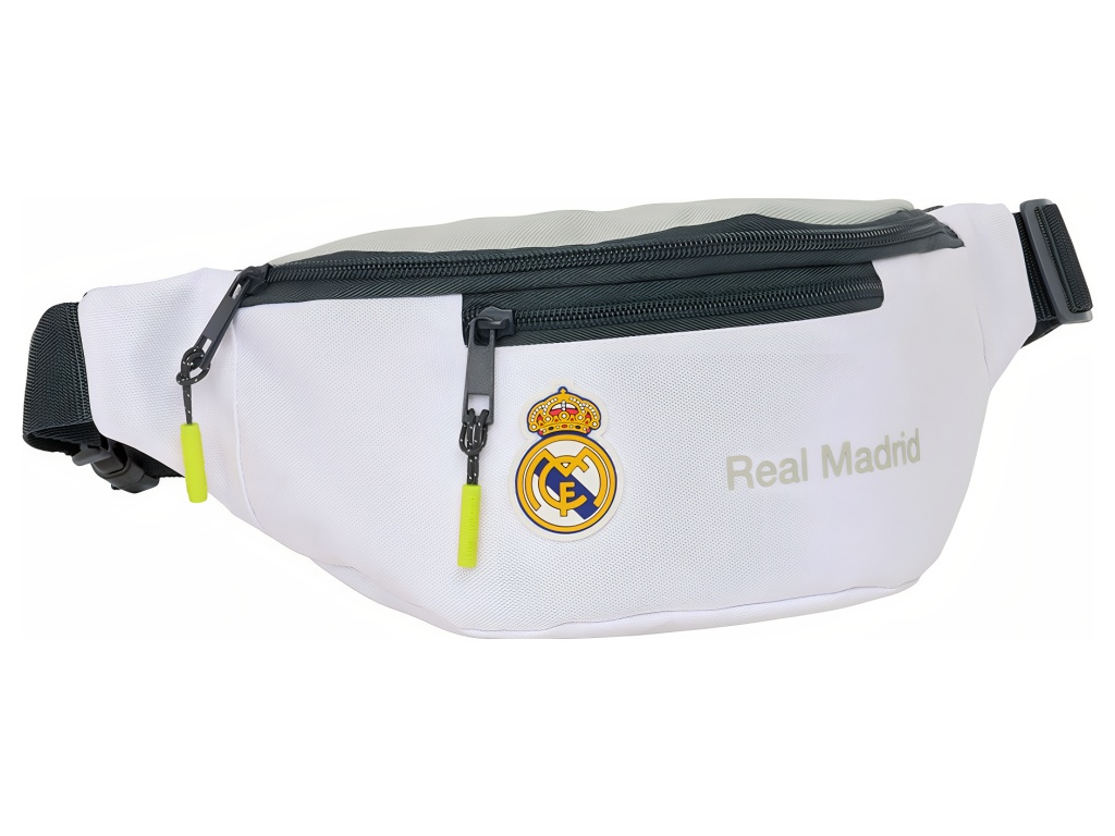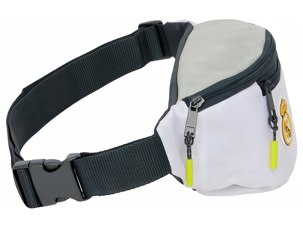 Ledvinka Real Madrid v bílé barvě se dvěma kapsami na zip a klubovým znakem. Čistý sportovní design doplňuje znak Real Madrid, který dá jasně najevo, komu fandíš. Ledvinka má hlavní komoru na zip a přední kapsu na zip. Rozměr 23 × 9 × 12 cm. Objem 2,5 l. O pohodlí se stará nastavitelný bederní popruh s rychlým zapínáním na přezku. Ledvinka je vyrobená z odolného polyesteru. Snadno se čistí vlhkým hadříkem. Ideální do školy, na tréninky i na cestování – všechny drobnosti máš bezpečně u sebe a ruce volné.