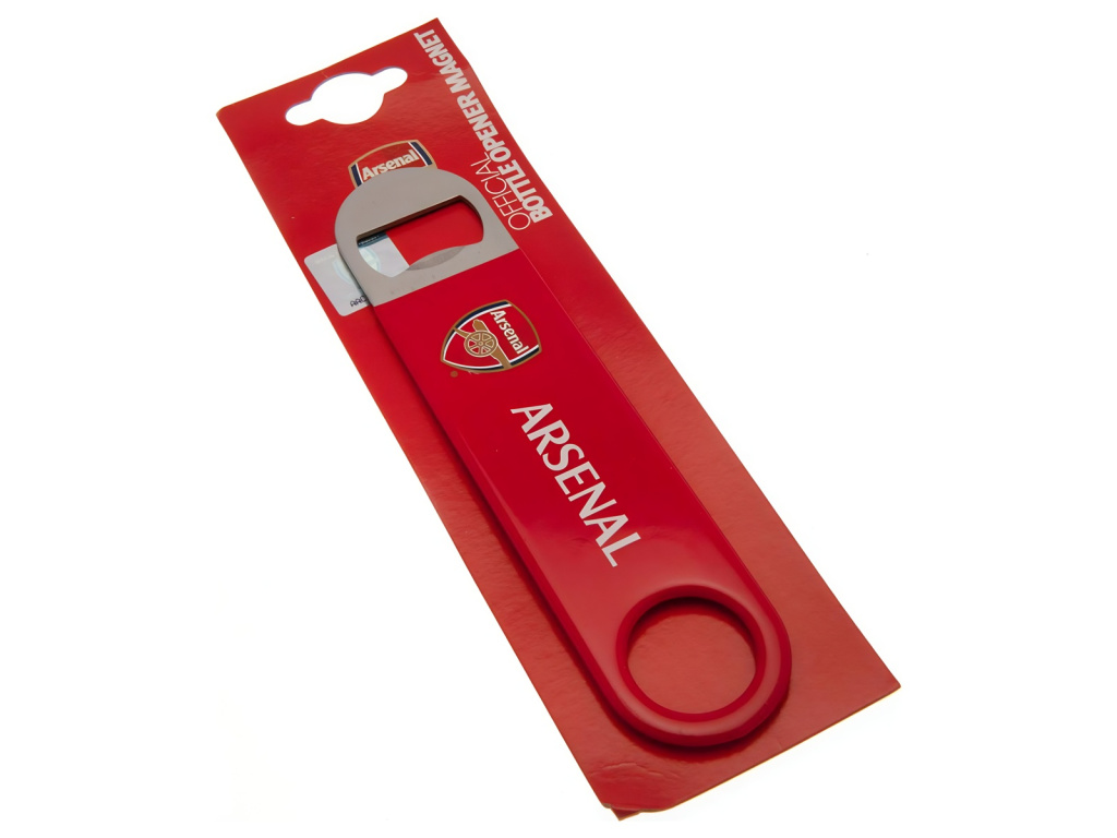 Magnetický otvírák Arsenal FC. V červené barvě zdoben barevným znakem klubu uprostřed. Součástí otvíráku je také magnet pro snadné uchycení na jakýkoliv kovový povrch. Rozměr 18 x 4 cm z něj činí praktického pomocníka.