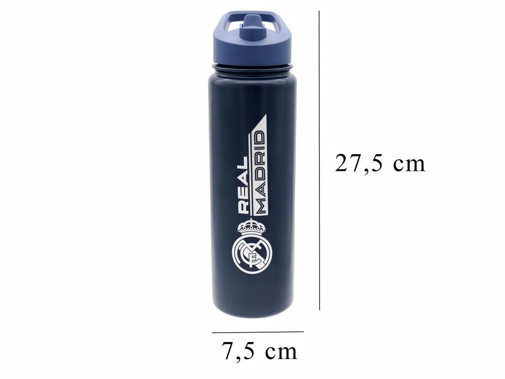 Nerezová láhev Real Madrid s dvojitou stěnou a objemem 750 ml v tmavě modré barvě. Díky izolaci z nerezové oceli udrží teplé nápoje až 8 hodin a studené až 12 hodin. Uzávěr kombinuje výklopné pítko pro rychlé popíjení a madlo pro pohodlné přenášení. Na přední straně je bílý potisk se znakem klubu a nápisem Real Madrid. Láhev je odolná vůči korozi a zachovává chuť i čistotu nápoje.