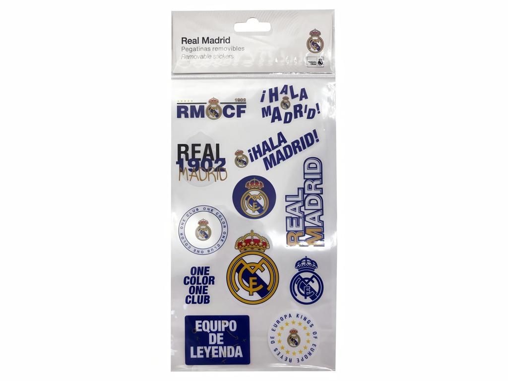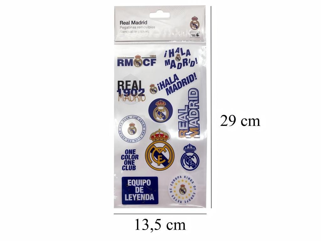 Sada 12 odnímatelných samolepek Real Madrid s klubovými znaky, nápisy a motivy. Na archu najdeš různé varianty znaku klubu, nápisy Hala Madrid, Real 1902 Madrid, One Color One Club, Equipo de Leyenda i Reyes de Europa. Samolepky mají bílý podklad s modrými a žlutými motivy. Snadno je nalepíš na sešity, desky, notebook, dveře pokoje nebo kamkoli, kde chceš mít kousek Realu na očích. Díky odnímatelné vrstvě je zase bez problémů sundáš.