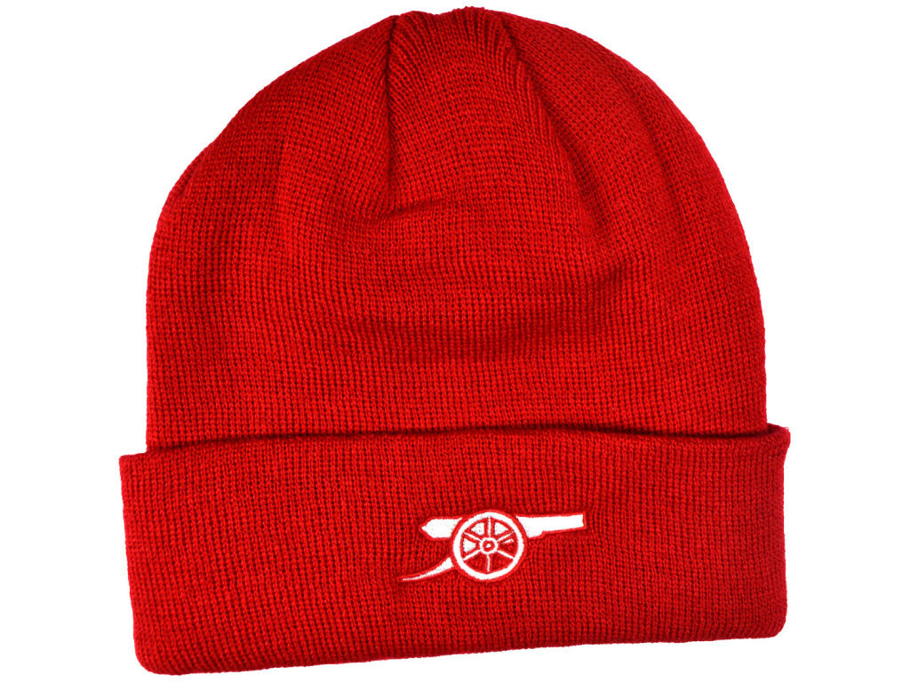 Pletená zimní čepice Arsenal FC v červené barvě s ohrnutým lemem a bílým vyšitým dělem na přední straně. Hřeje do města i na cestu na stadion. Pružný úplet se přizpůsobí a drží tvar. Ohrnutý lem přidává vrstvu přes uši. Materiál 100% akryl se snadno udržuje a rychle schne. Minimalistický motiv snadno sladíte s kabátem i bundou.