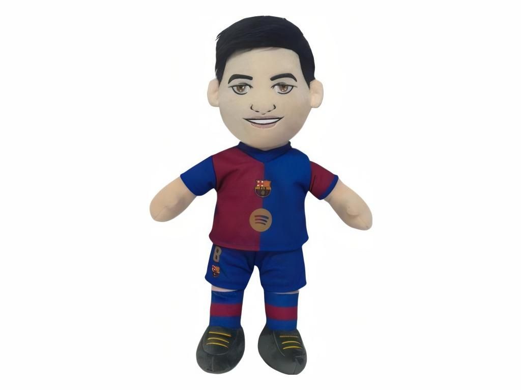 Plyšová figurka Pedriho v domácím dresu FC Barcelona s číslem 8 na šortkách. Měkký plyšák z 100% polyesteru s propracovanými detaily — klasický modro-vínový dres se znakem klubu na hrudi, tmavé vlasy a výrazný úsměv. Výška 40 cm je akorát na mazlení i na poličku v dětském pokoji. Snadno se udržuje ručním praním a díky polyesteru rychle schne.