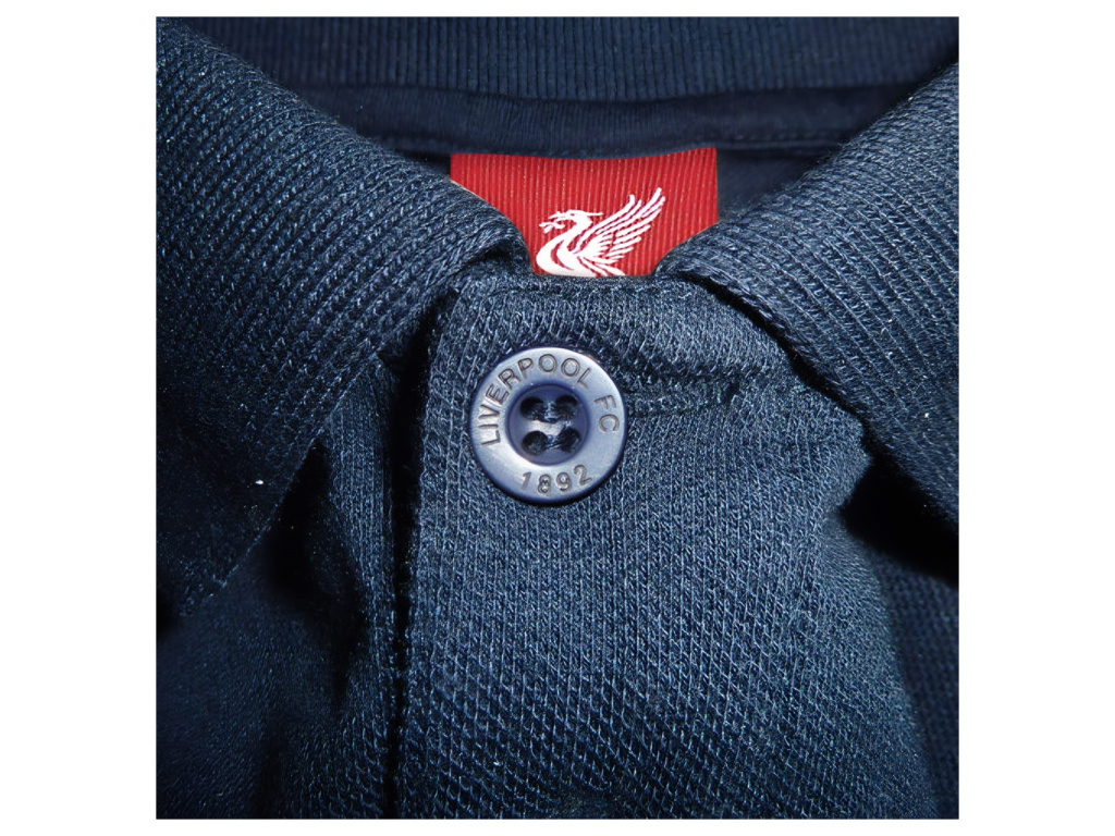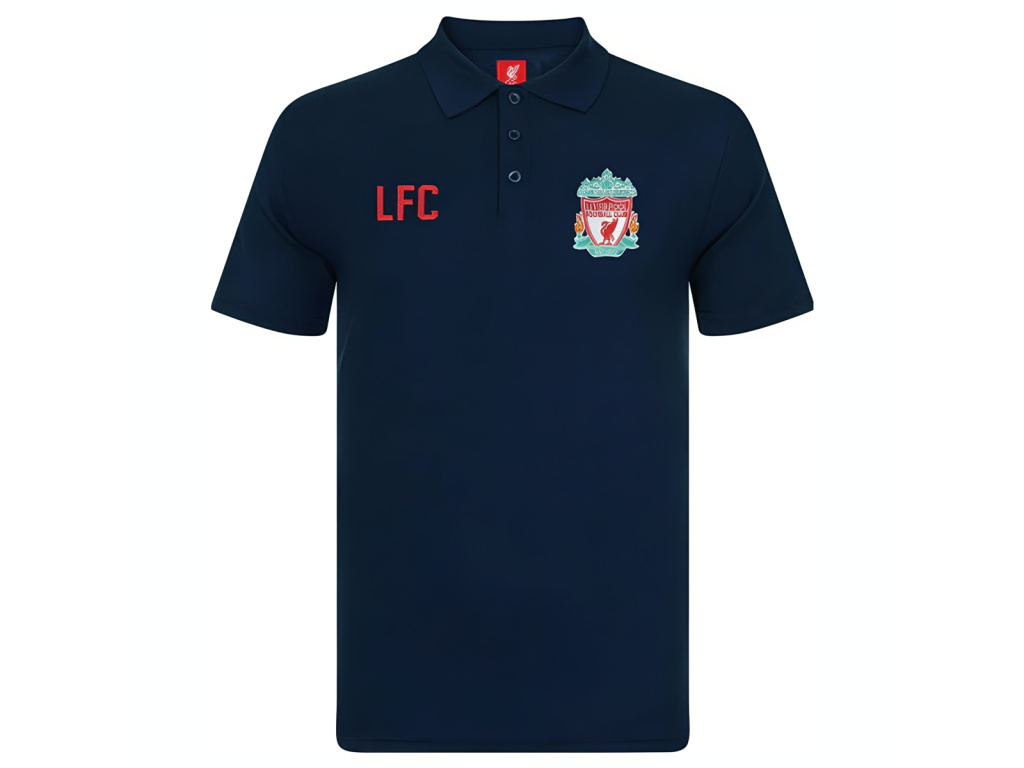Polo tričko Liverpool FC v tmavě modré barvě. Našitý znak fotbalového klubu. Zepředu vyšitý nápis LFC. Značkové knoflíky s názvem klubu. Vyrobeno z příjemného materiálu s příměsí bavlny.