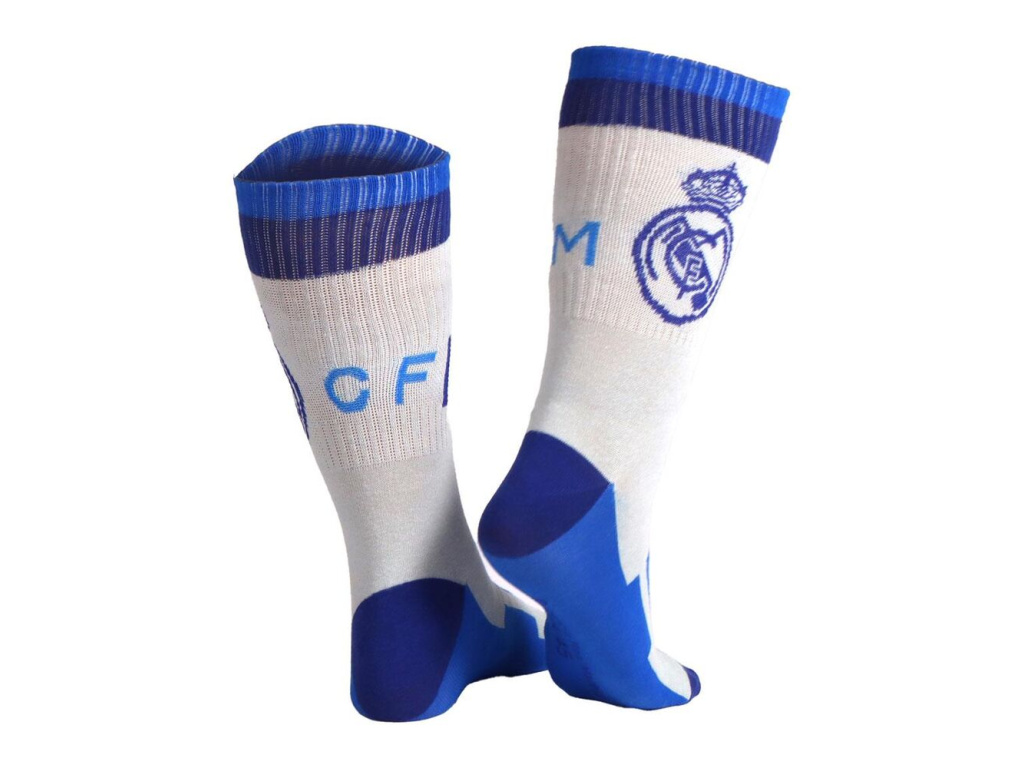 Fanouškovské ponožky Real Madrid v modro‑šedém provedení s výškou crew a klubovým znakem ve výpletu. Směsový úplet z 53 % bavlny, 30 % polyesteru, 16 % nylonu a 1 % elastanu je příjemný a pružný. Zesílení na patě, špičce a chodidle zvyšuje životnost. Prodyšné panely a žebrovaný lem pomáhají udržet nohu v pohodlí a ponožku na místě. Iniciály RM/CF jsou zapracované do materiálu. Balení obsahuje 1 pár ve velikosti EU 38–45.