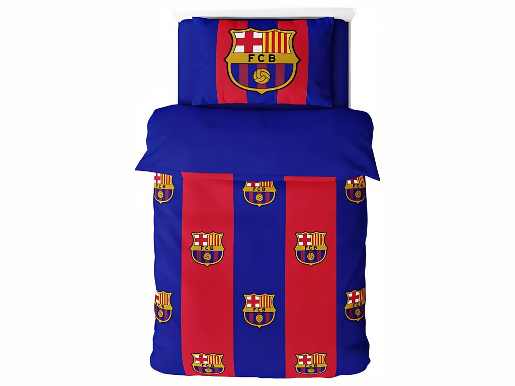 Povlečení FC Barcelona Blaugrana v klubových pruzích s výrazným znakem pro jednolůžko 135 × 200 cm. Modro‑červené pruhy s opakovaným klubovým znakem zdobí přikrývku i povlak. Povlak na polštář nese velký znak a ladí s přikrývkou. Jemné mikrovlákno je příjemné na dotek a rychle schne. Hodí se do dětského pokoje i ložnice fanouška.