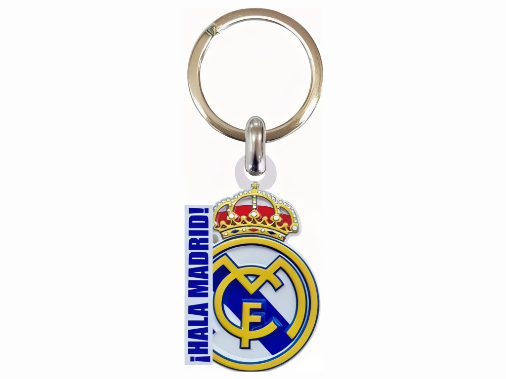Pevný přívěsek na klíče Real Madrid s motivem klubového znaku a nápisu ¡Hala Madrid!. Přívěsek je z pryskyřice s lakovaným povrchem. Motiv je jednostranný. Kovový kroužek usnadní nasazení na svazek klíčů, batoh nebo zip. Rozměry jsou kompaktní a znak je dobře vidět.