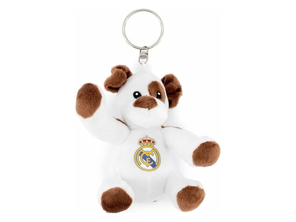 Plyšový přívěsek ve tvaru pejska s klubovým znakem Real Madrid. Bílé tělo s hnědými detaily na tlapkách, ouškách a čumáčku mu dodává hravý vzhled. Na hrudi nese znak královského klubu. Měkký 100% polyester je příjemný na dotek a díky kovovému kroužku ho snadno připneš ke klíčům, batohu nebo tašce.