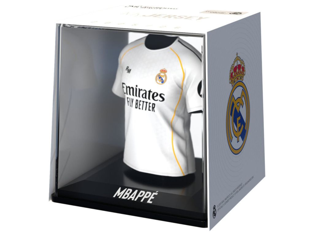 Tohle není obyčejná figurka do police. Mini dres ve vitríně zachycuje domácí sadu Realu ze sezony 2025/26 do posledního detailu — od zlatých linií až po znak na hrudi. Díky kompaktním rozměrům se vejde na pracovní stůl, poličku nebo do vitríny vedle dalších sběratelských kousků. Pokud hledáš dárek pro fanouška Bílého baletu, který překvapí formou i obsahem, tady ho máš.