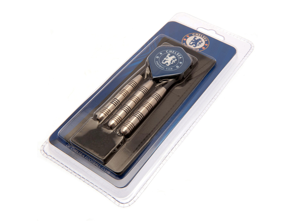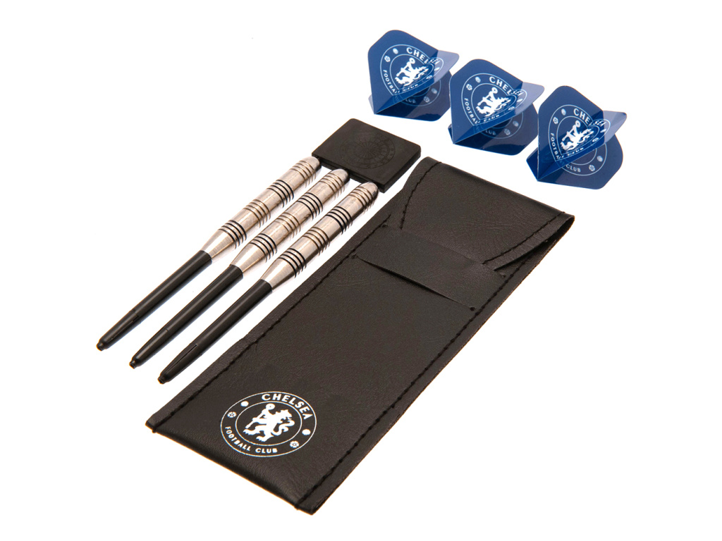 Házecí šipky Chelsea FC v klasické modré barvě a se znakem fotbalového klubu Chelsea. Sada obsahuje 3 šipky s příslušenstvím. 3x mosazné tělo s ozdobnými vroubky a kovovým hrotem. 3x plastové násadky. 3x modré PVC letky. Součástí sady je tmavě hnědé kožené pouzdro s bílým znakem Chelsea FC. Vhodné pro začátečníky i mírně pokročilé hráče.