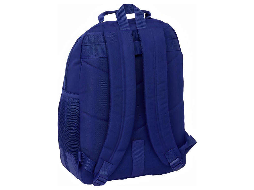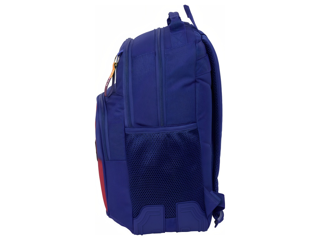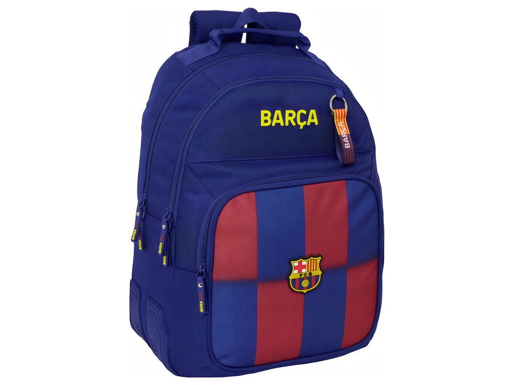 Školní batoh FC Barcelona v modro‑červeném provedení se znakem klubu. Batoh zdobí znak FC Barcelona. Batoh má 2 hlavní komory a přední kapsu na zip. Má také boční kapsu na lahev. Přední kapsy mají vnitřní organizér. Hlavní oddíly mají dvojité jezdce pro snadné otevírání. Rozměr 32 × 42 × 15 cm. Objem 20 l. Nastavitelné ramenní popruhy a záda jsou polstrovaná a ergonomická. Horní madlo usnadní přenášení v ruce. Na bocích jsou gumové rohy pro vyšší odolnost. Batoh lze připevnit k vozíku. Hodí se do školy i na volnočasové aktivity.