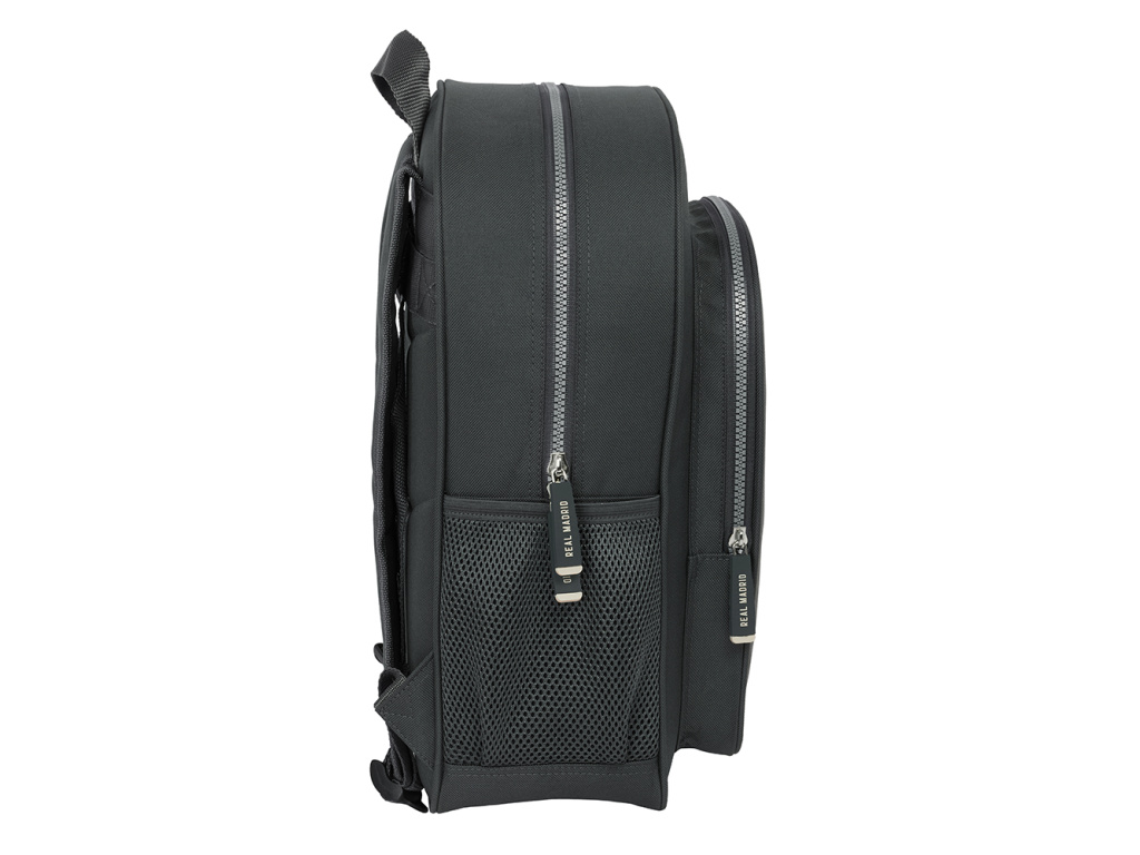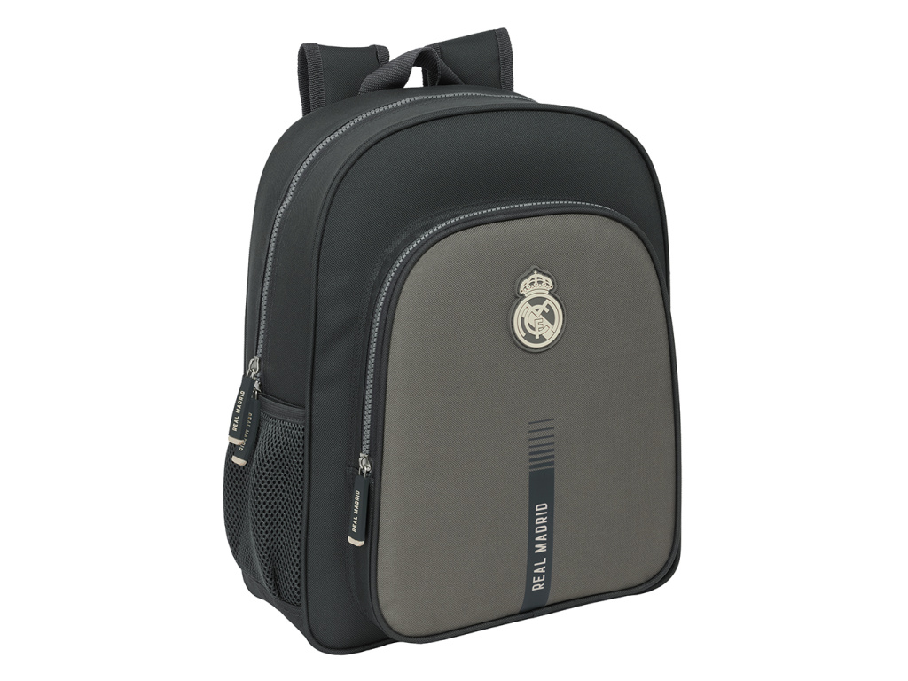 Školní batoh Real Madrid FC v moderní kombinaci tmavé a světlé šedé barvy. Přední stranu zdobí oficiální znak klubu a stylový nápis Real Madrid. Batoh je vyroben z odolného polyesteru, který zajistí dlouhou životnost. Praktická hlavní kapsa s velkým zipem umožňuje snadný přístup dovnitř. Přední kapsa nabízí další úložný prostor. Boční síťované kapsy jsou ideální na láhev s vodou.