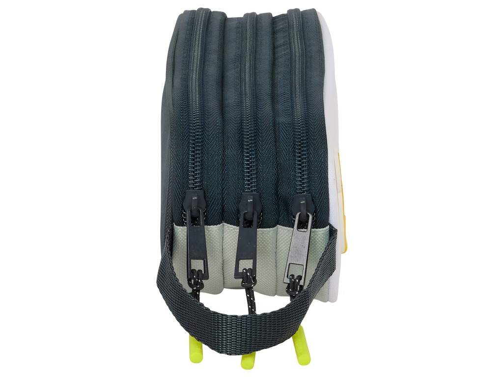 Školní pouzdro Real Madrid FC v bílé barvě se třemi komorami, se znakem klubu a bočním uchem pro snadné nošení. Přední stranu zdobí znak klubu v plné barvě. Pouzdro má tři komory. Zapínání je na zip. Každá komora oddělí tužky, pastelky a drobnosti. Pouzdro je bez vybavení. Boční ucho na přenášení usnadní manipulaci. Oddělené části pomohou udržet pořádek. Rozměr 21 x 7 x 8,5 cm. Objem je 1,25 l. Vhodné do školy i na kroužky.