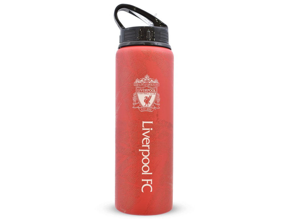 Sportovní hliníková láhev na pití Liverpool FC o objemu 750 ml v červeném provedení s bílým klubovým znakem a textem. Na zadní straně je motto „You'll Never Walk Alone“. Uzavíratelné pítko snižuje riziko rozlití. Poutko na víčku usnadní přenášení. Lehký hliníkový korpus a odolný potisk pro každodenní používání.