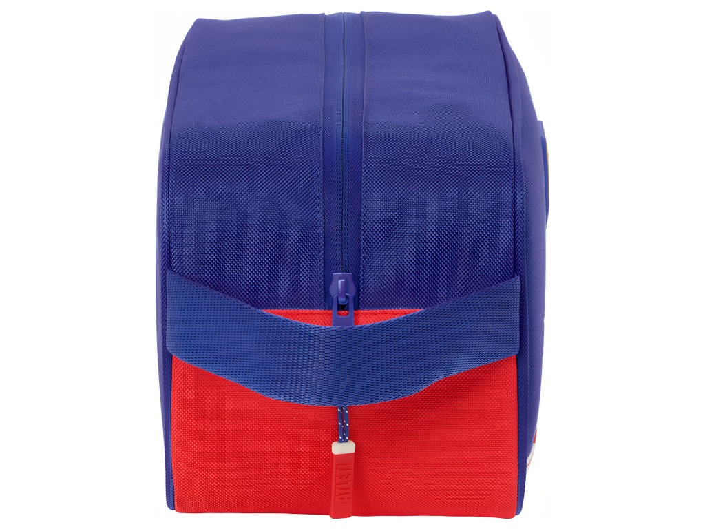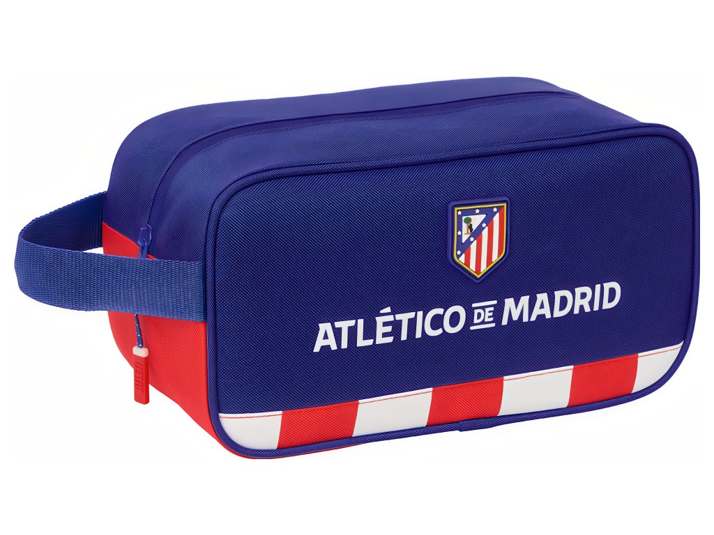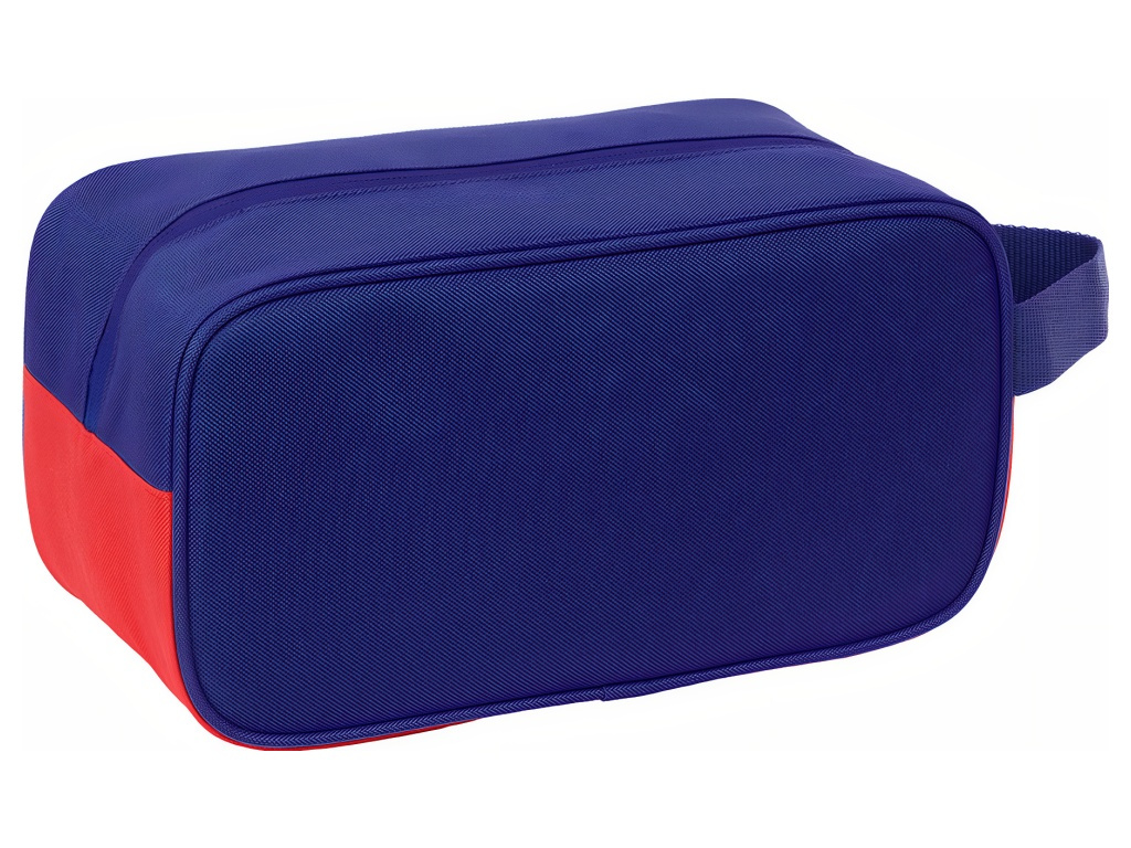 Taška na obuv Atlético de Madrid v červené a modré s pruhovaným motivem klubu. Přední stranu zdobí znak Atlético de Madrid. Má jednu hlavní komoru na zip. Hlavní prostor pojme kopačky nebo tenisky. Rozměr 29 × 14 × 15 cm. Objem 6 l. Boční poutko usnadní přenášení v ruce. Taška je vyrobená z odolného polyesteru. Doporučeno otírat vlhkým hadříkem. Skvěle poslouží na tréninky i do školy na přezůvky.