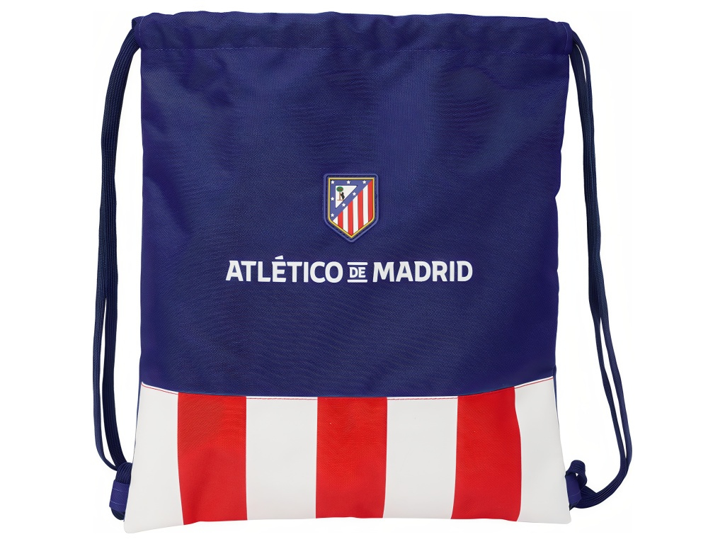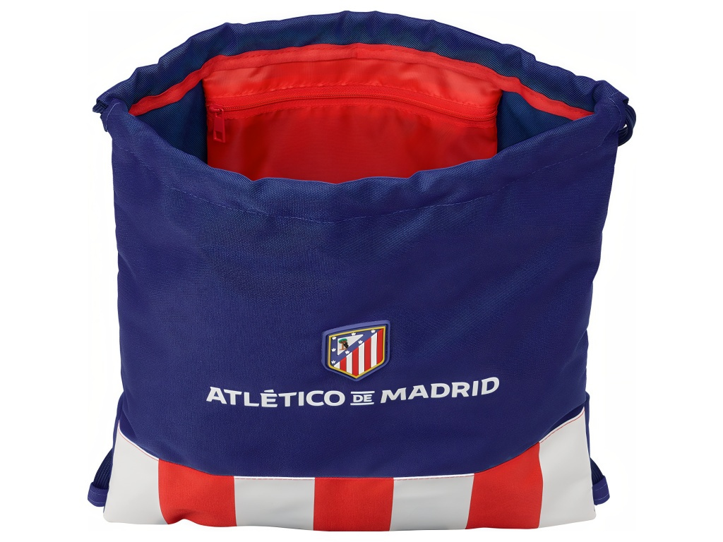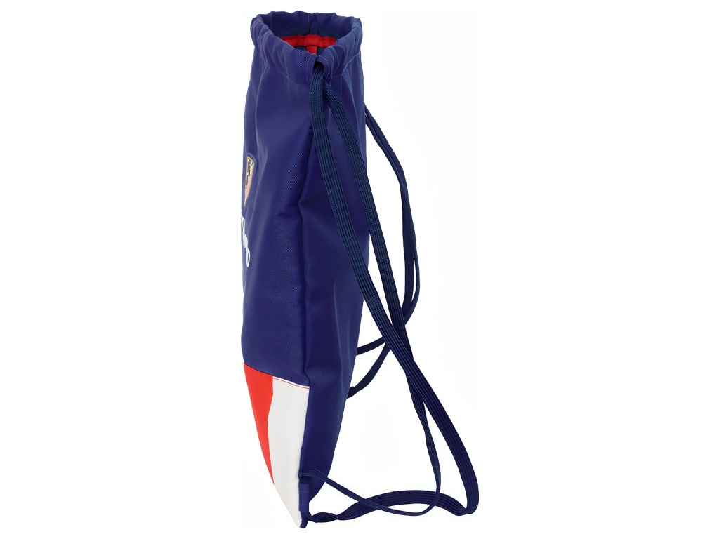 Sportovní vak Atlético de Madrid v červené a modré se stahováním na šňůrky a klubovým motivem. Kombinace červené a modré působí výrazně. Přední stranu zdobí znak Atlético de Madrid. Vybavení tvoří jedna hlavní komora na školní nebo sportovní věci. Uvnitř je vnitřní kapsa na zip na drobnosti. Uzavření zajišťují stahovací šňůrky. Rozměr 35 × 40 × 1 cm. Objem cca 5 l. Vak neseš na zádech jako batoh. Šňůrky slouží jako ramenní popruhy. Vak je lehký a skladný. Materiál tvoří kvalitní polyester. Doporučeno otírat vlhkým hadříkem. Hodí se na tělocvik, trénink, fotbal i basketbal.