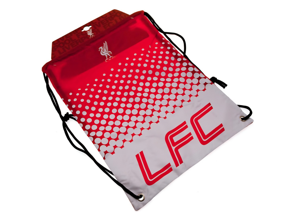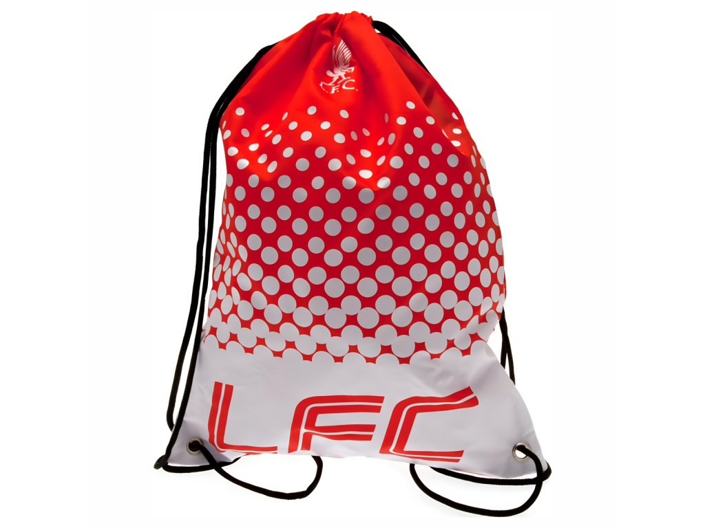 Sportovní vak Liverpool FC zdoben červenou a bílou barvou. Bílý znak klubu. Zespodu červená zkratka LFC. Uzavírání pomocí stahovacích šňůrek. Rozměry 44 x 33 cm. Kovová poutka ve spodní části.